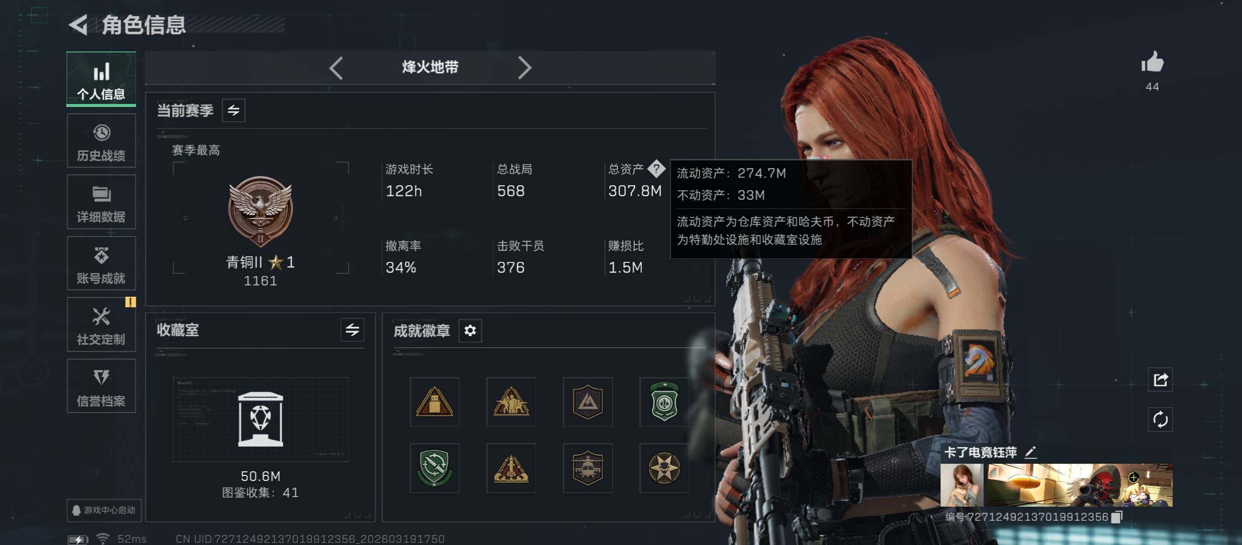 【高额资产307M+刀皮暗星】【Q区三端互通】【【无二协助处理】】YXz9453-特勤处:仓库8级/靶场6级/训练中心7级-总资产307m-哈夫币8568w-烽火等级:60级