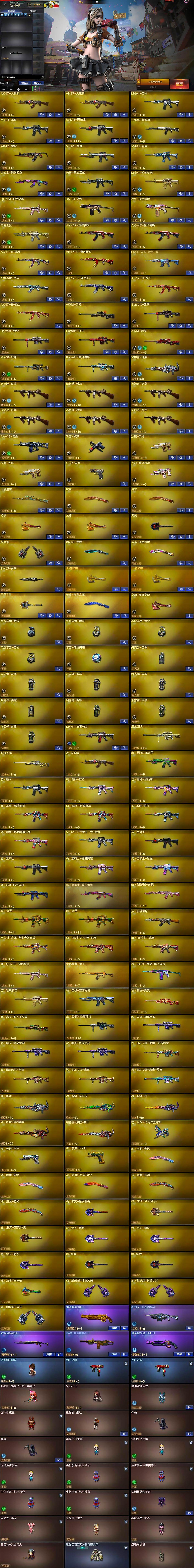 【热门武器】:QBZ03-金色蔷薇,M4A1-青龙,M200-幻神,死亡之眼*2,M4A1-黑骑士,汤姆逊-烈龙*6,加特林-炼狱,斯泰尔-蝴蝶,USP-雷暴,沙鹰-修罗