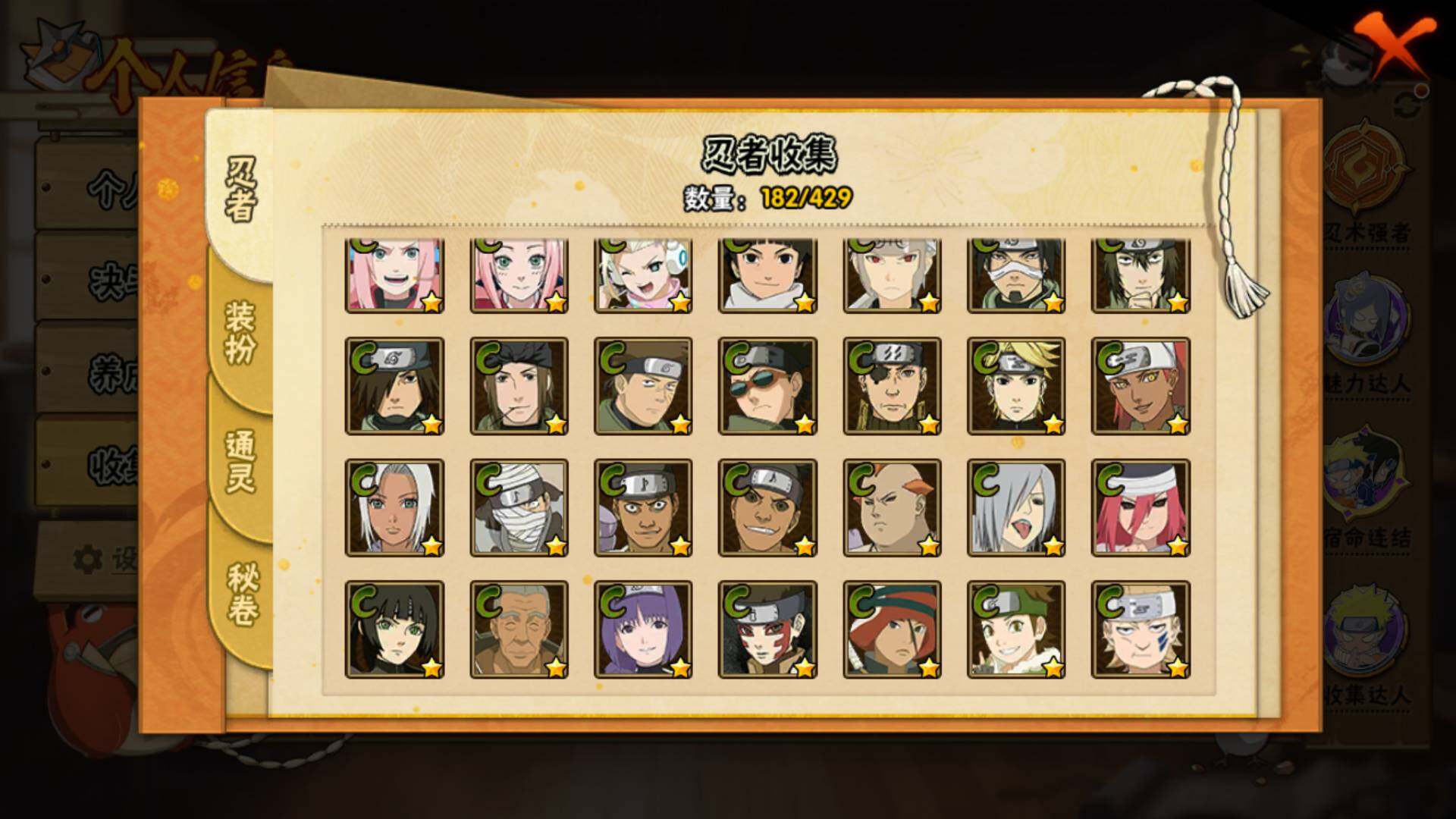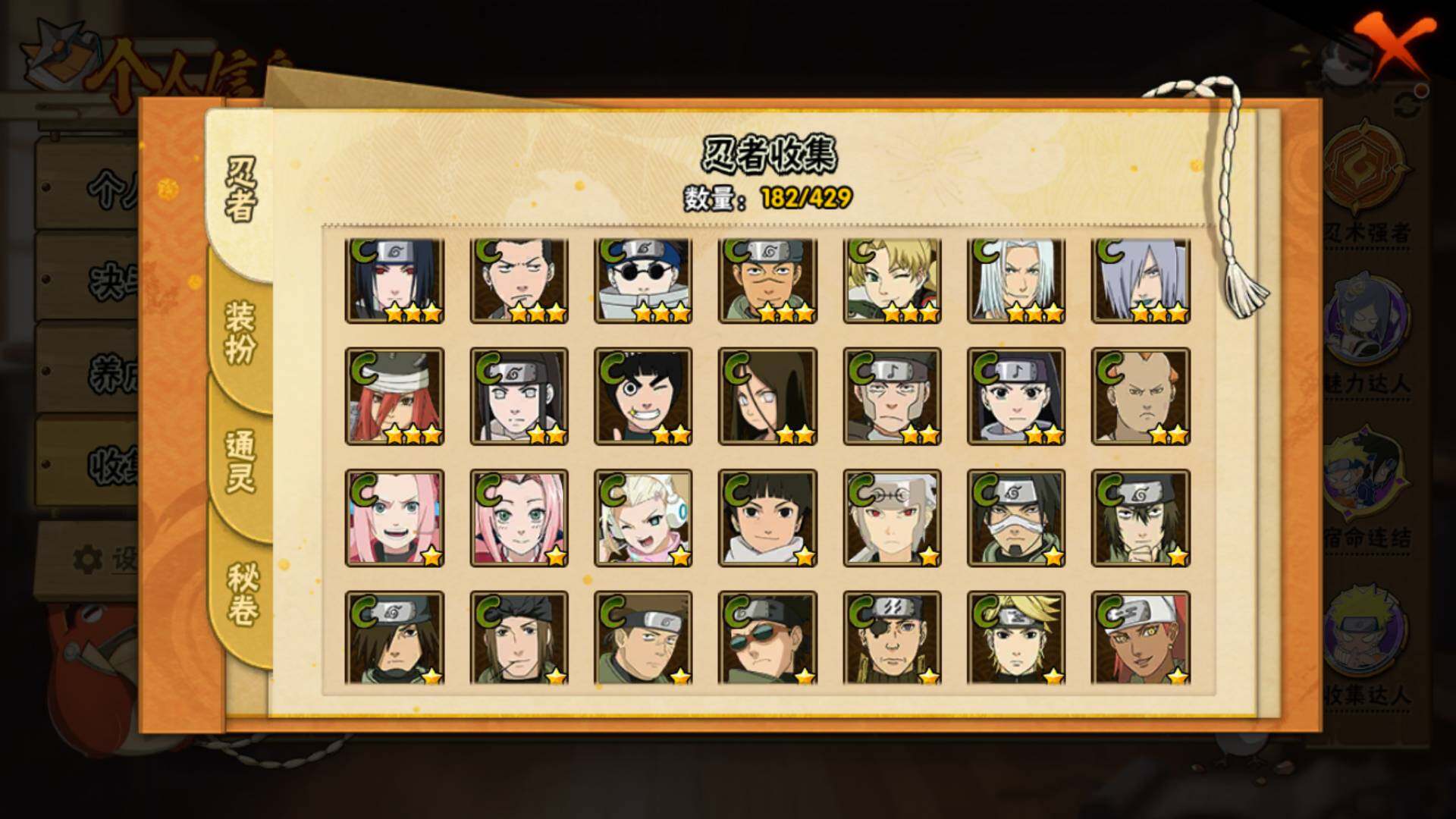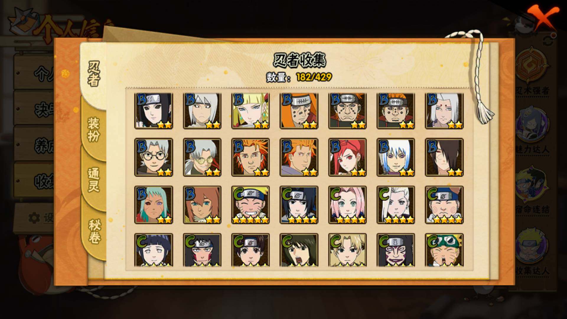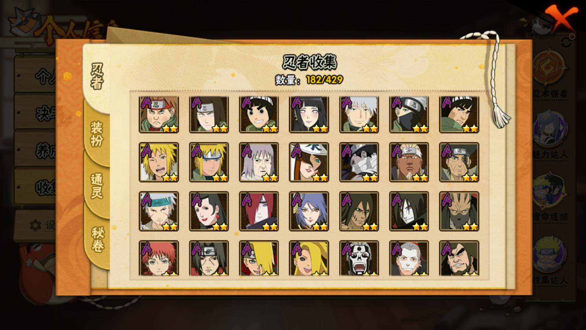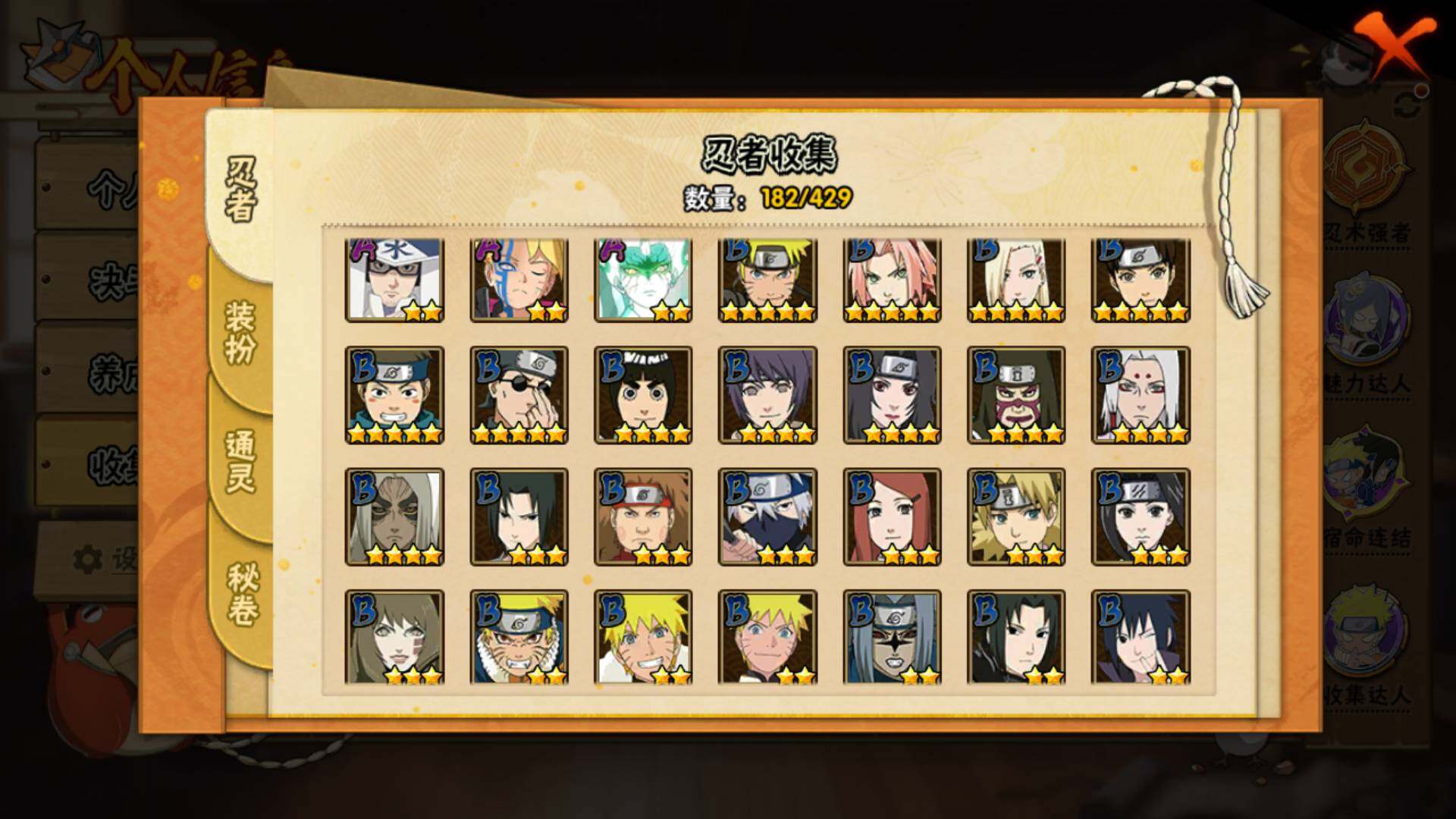 【S级忍者】:千手柱间「秽土转生」(3星),宇智波斑「秽土转生·解」(3星),春野樱「忍界大战」(3星),艾「忍界大战」(3星),宇智波鼬「须佐能乎」(3星),宇智波止水「须佐能乎」(3星),旗木卡卡西「须佐能乎」(3星