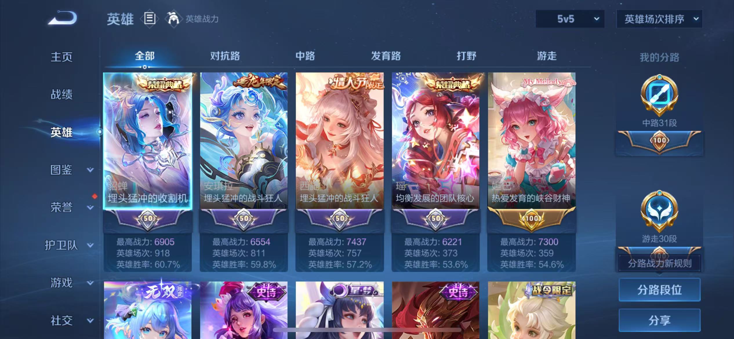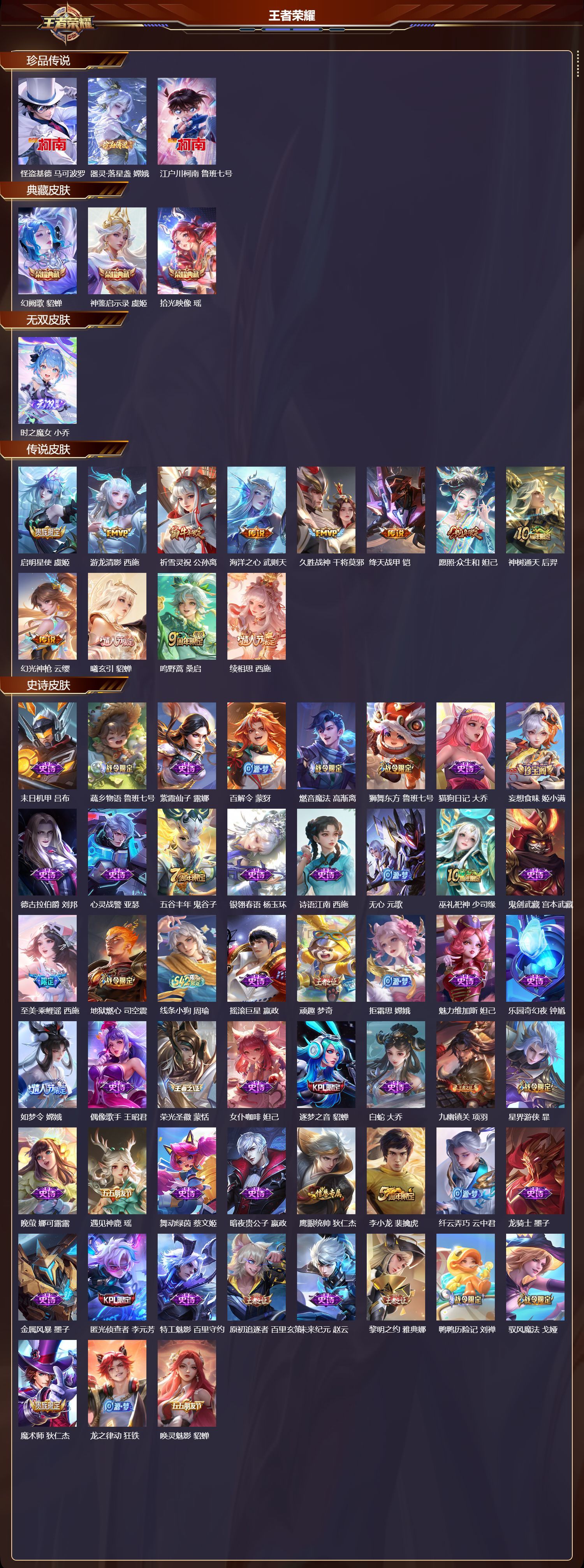 苹果v/至尊星耀/356皮肤/129英雄/3典藏/0珍品无双/1无双/3珍品传说/12传说/94史