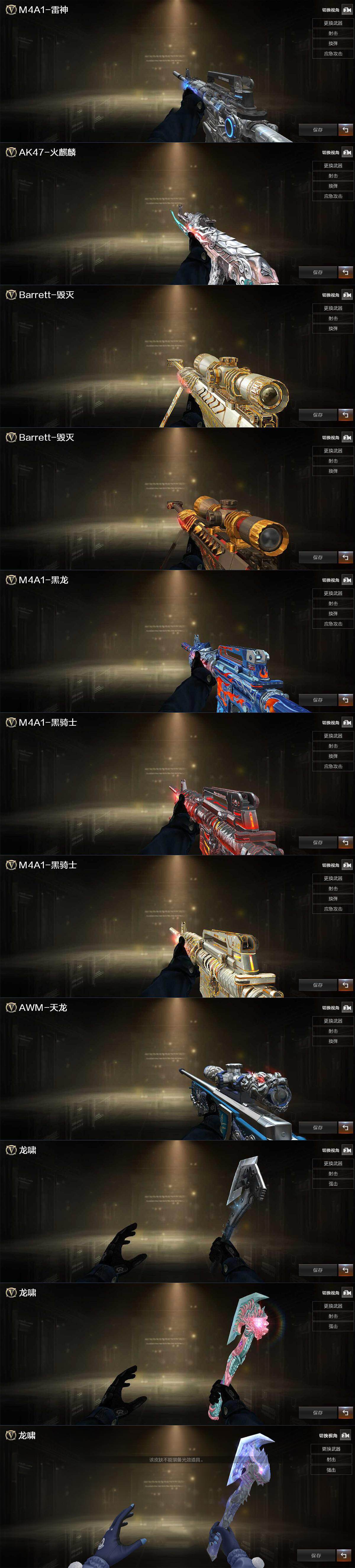 【热门武器】:M4A1-黑骑士,汤姆逊-烈龙,加特林-炼狱,沙鹰-修罗*2,荣耀世冠-龙啸
