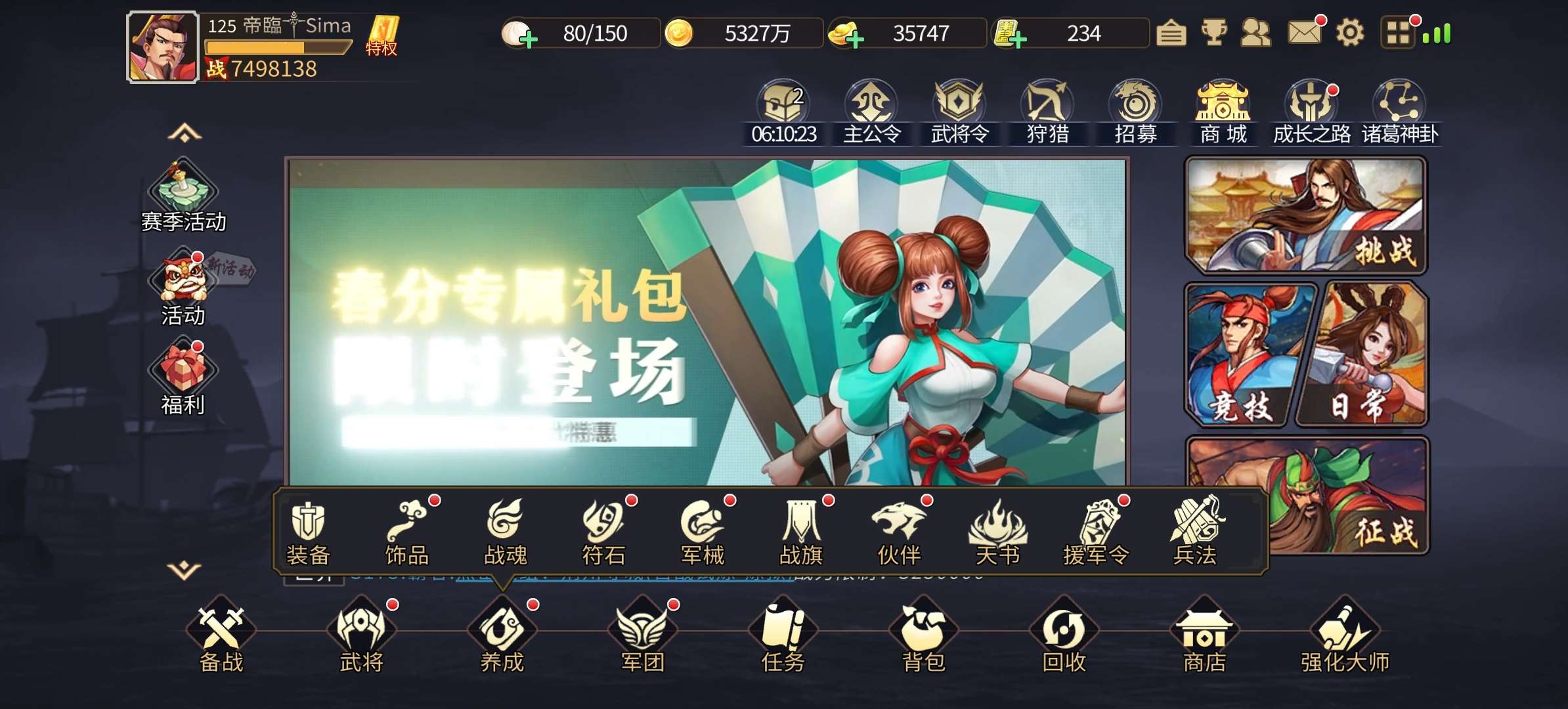 元宝多多,援军大招都有,排位轻松巅峰,普通月卡406天,至尊月卡32天天书64444,冰书随时升5星