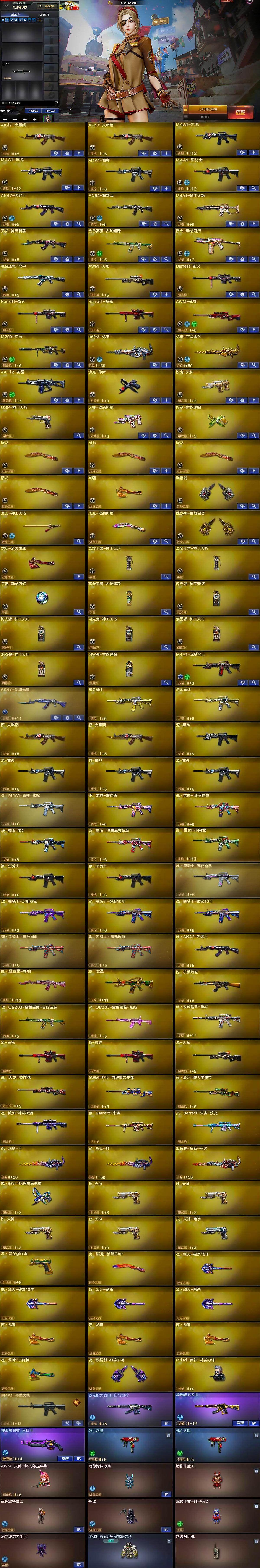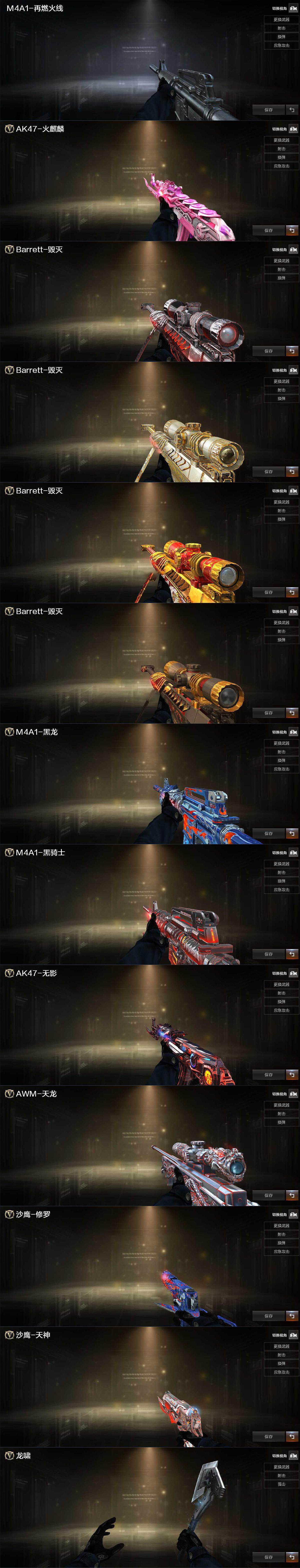 【热门武器】:M200-幻神,金色蔷薇-古蛇迷踪,修罗-古蛇迷踪,死亡之眼*2,M4A1-黑骑士,加特林-炼狱,沙鹰-修罗,金刚伞