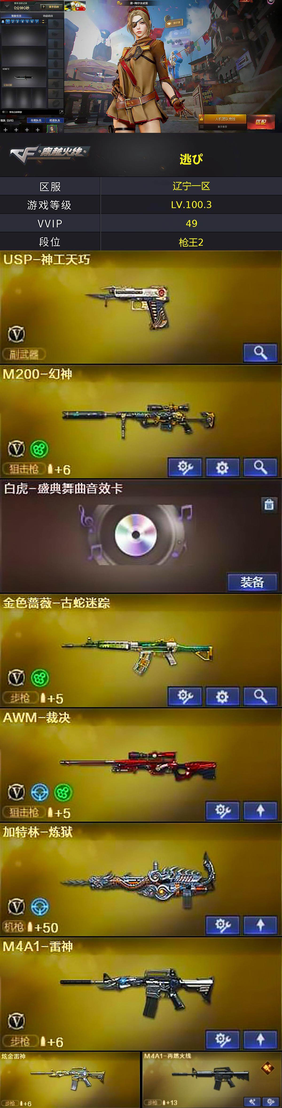 辽宁一区-49V-0王者武器数-2炫金武器数【热门武器】:M200-幻神,金