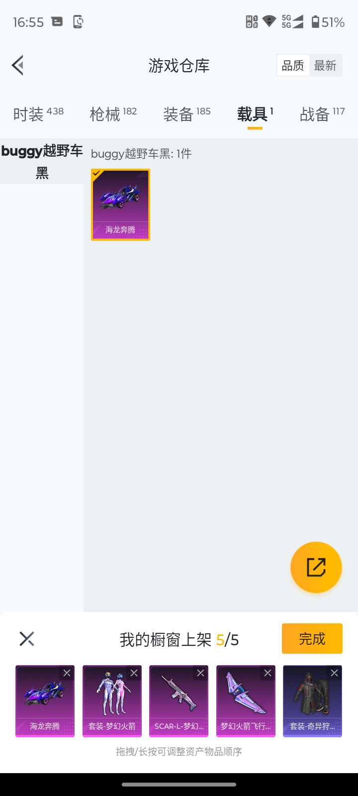 111套装/枪械6/装备185/载具1/战备117/王牌印记9/热力值51203/