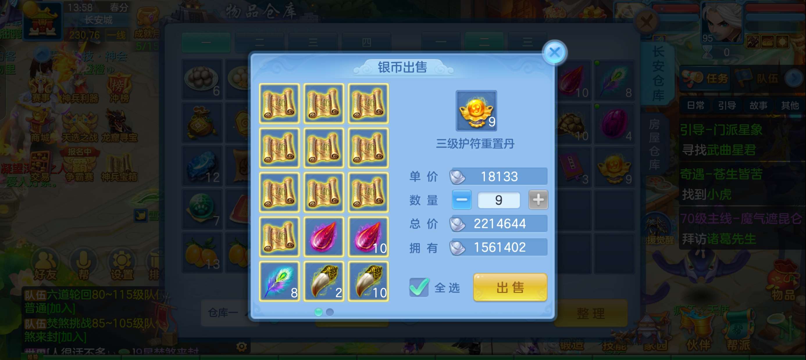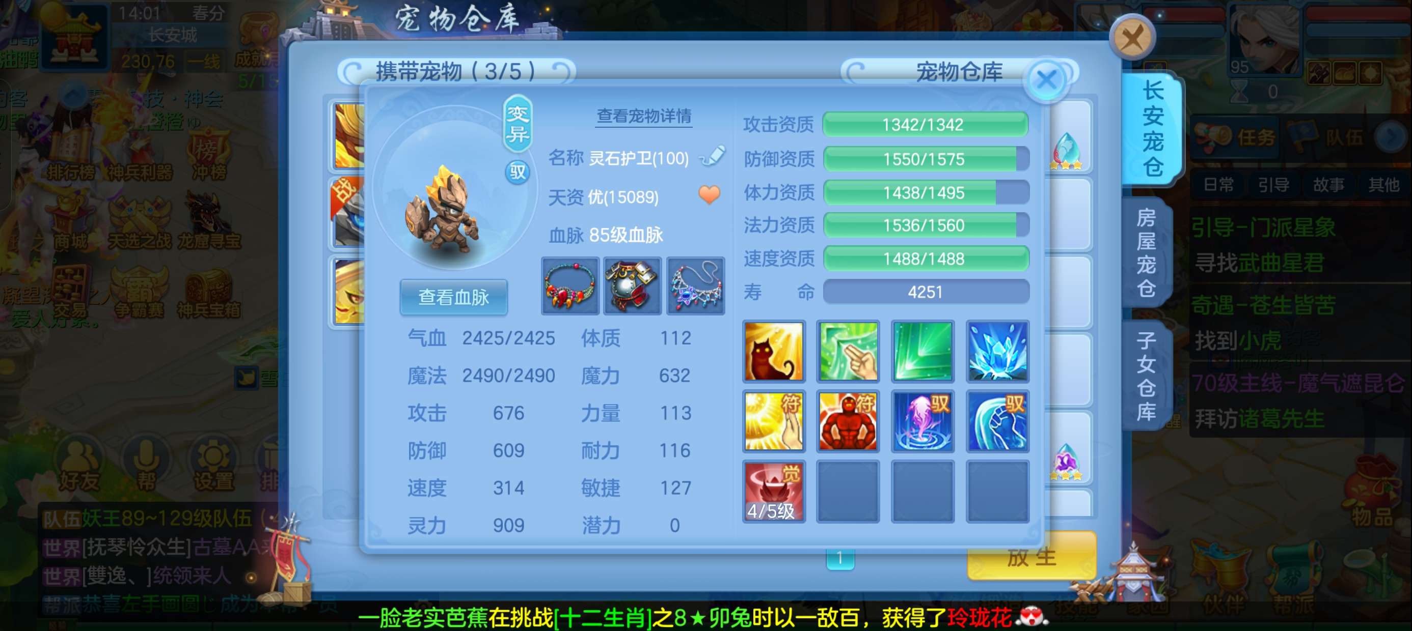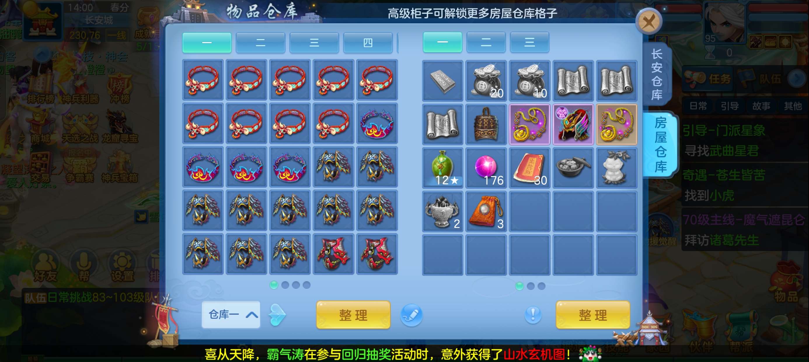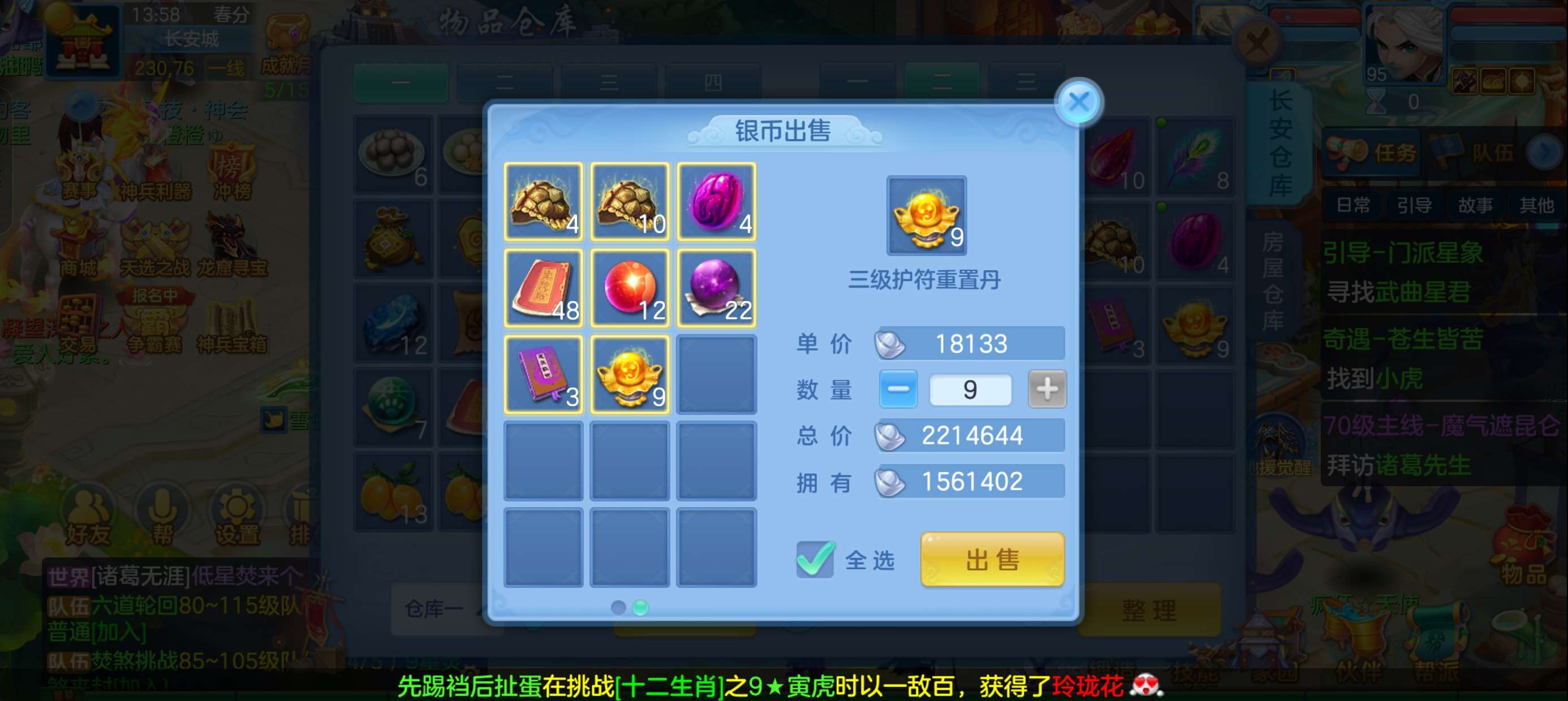 49个元宵,3张通灵符,4600还童丹,卡95满经验,目前377万银,每天都玩