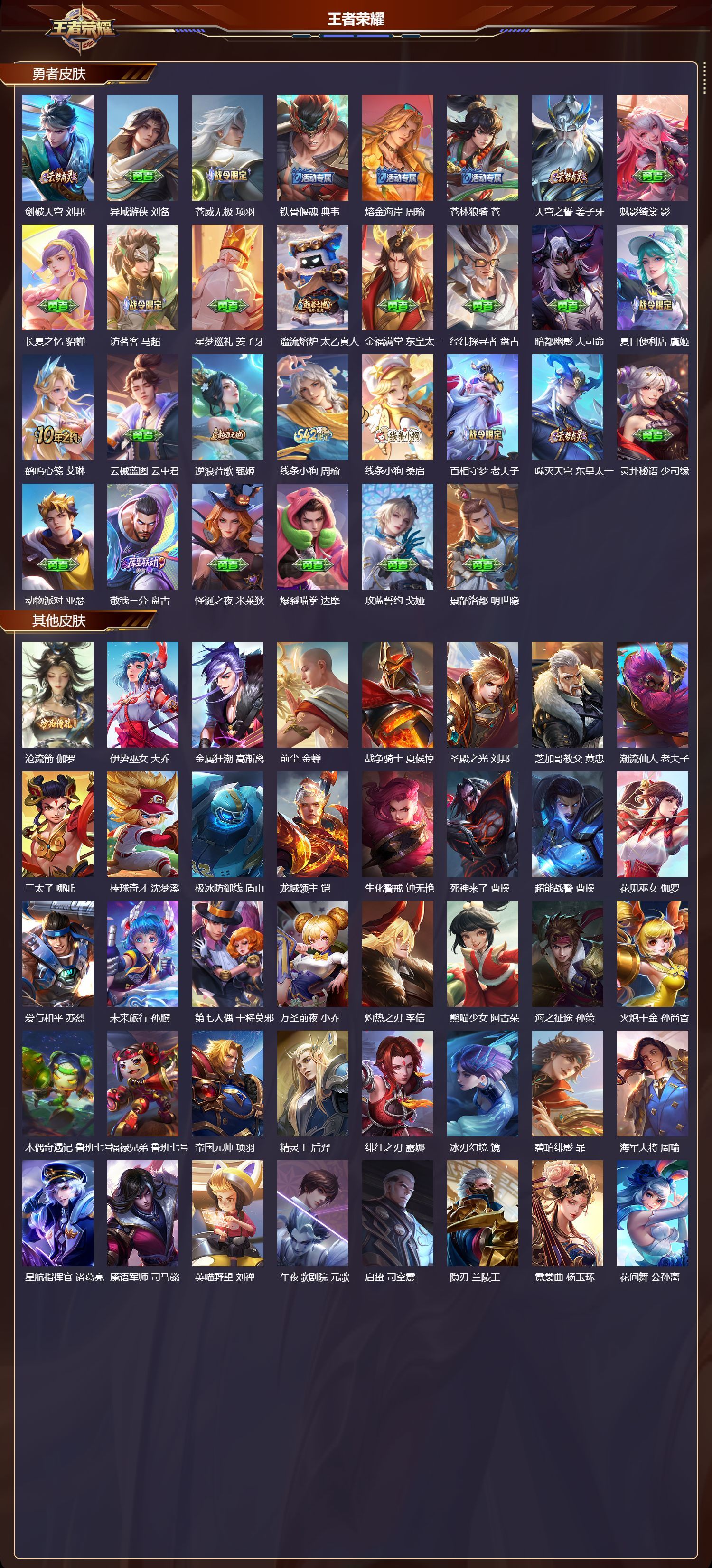 V10 皮肤532 英雄128 无双王者 荣耀典藏3 无双皮肤3 珍品传说4 传说65