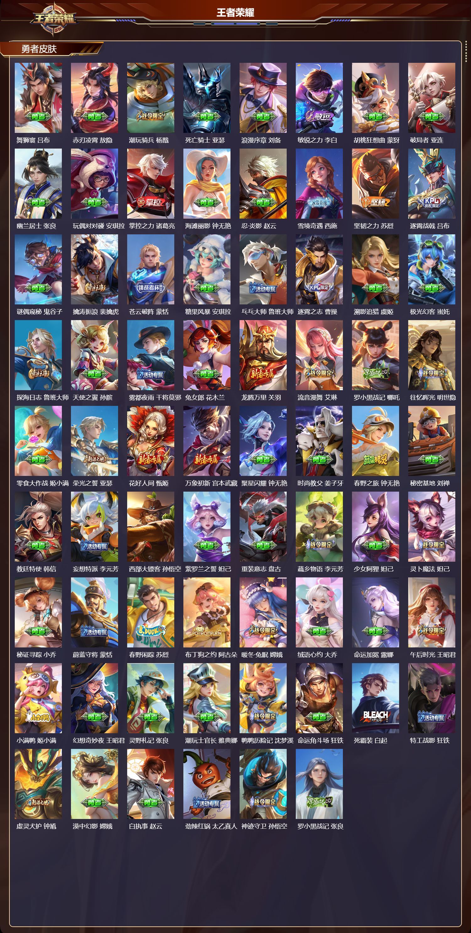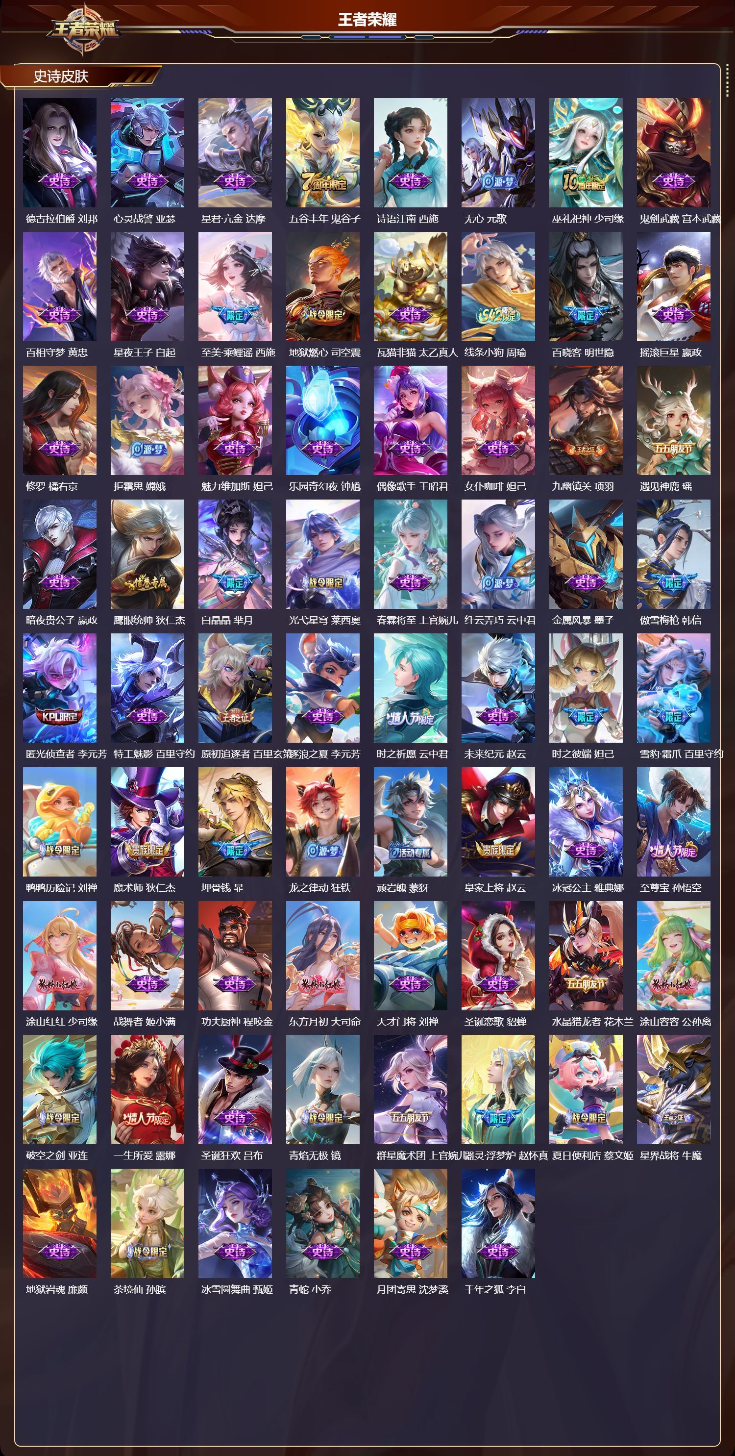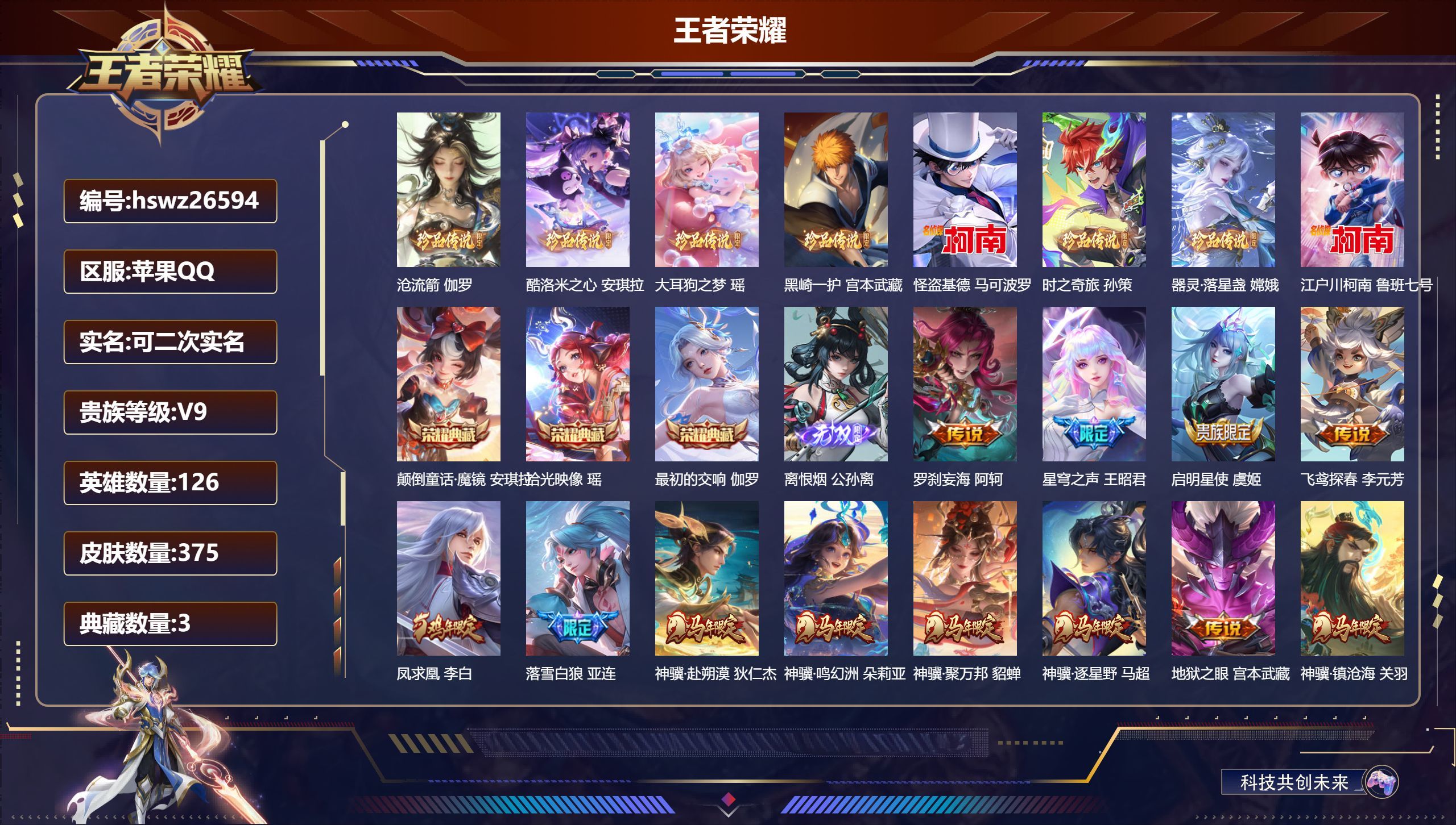 苹果QQ/荣耀王者/375皮肤/126英雄/3典藏/0珍品无双/1无双/8珍品传说/48传说/104