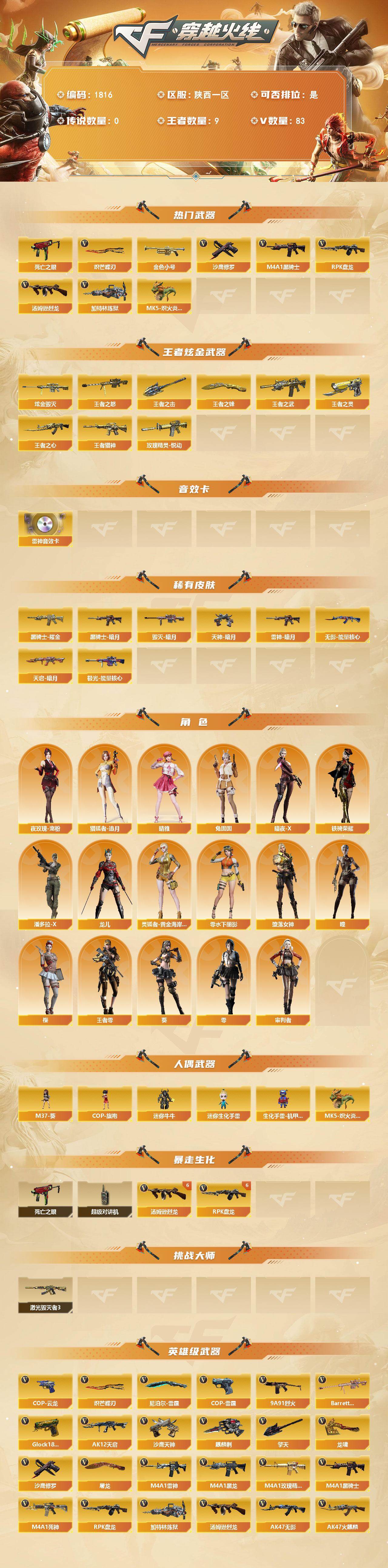 陕西一区-84V-9王者武器数-1炫金武器数