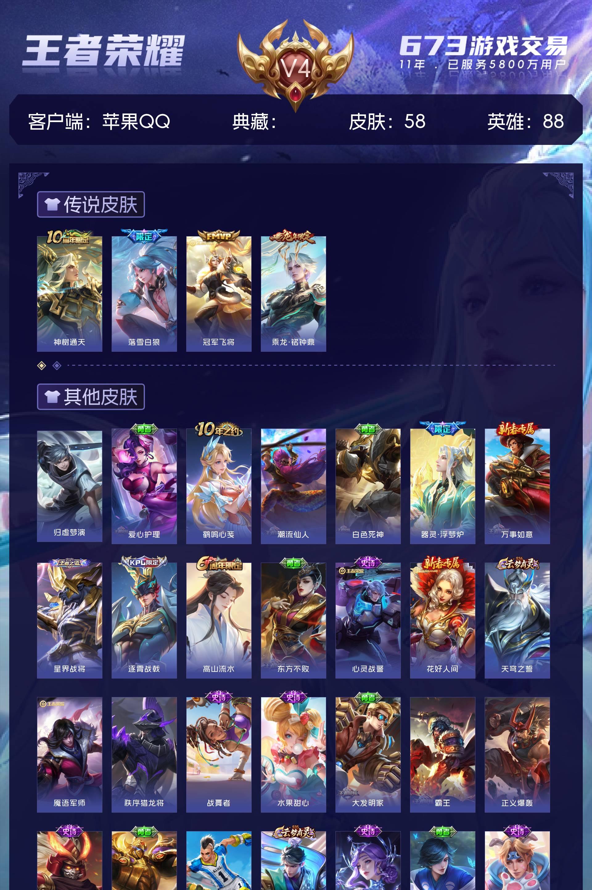 V4 皮肤58 英雄88 永恒钻石 传说4