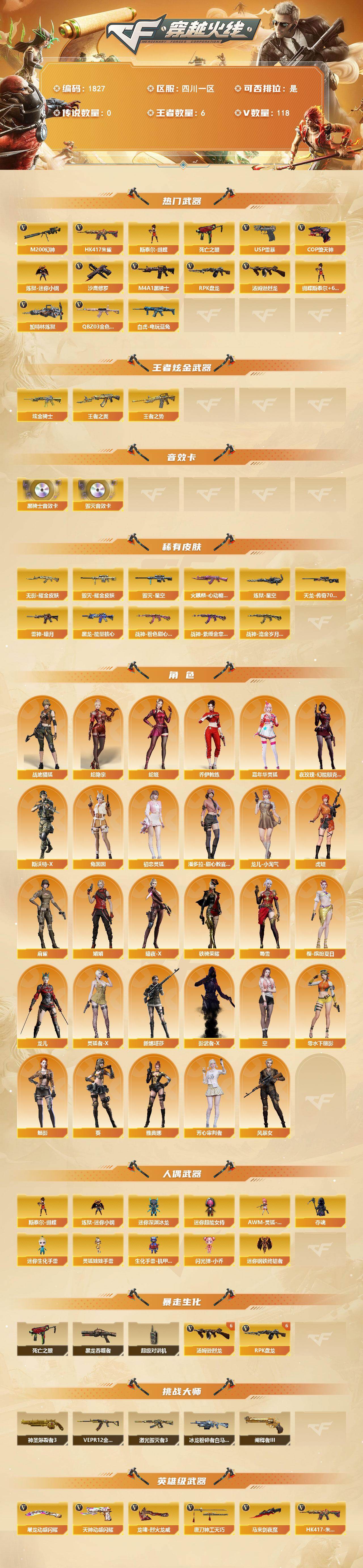 四川一区-121V-6王者武器数-2炫金武器数