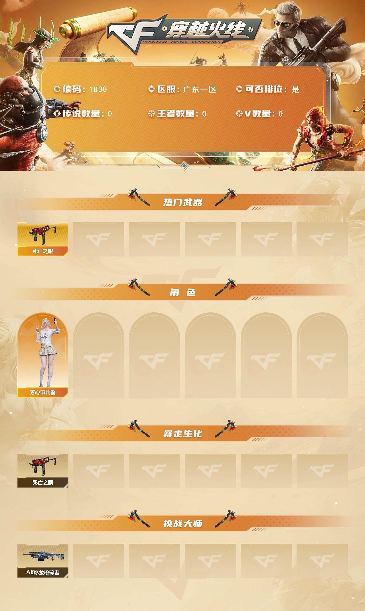 广东一区-0V-0王者武器数-0炫金武器数【热门武器】:死亡之眼【角色】: