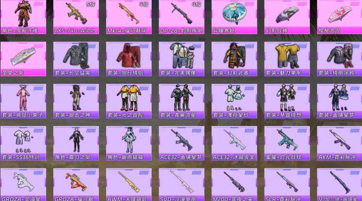 【粉色枪皮等级】:AKS-74U-森灵之息(五级),Mk14-福马献瑞(四级),DP-28-豹影疾电(四级)
