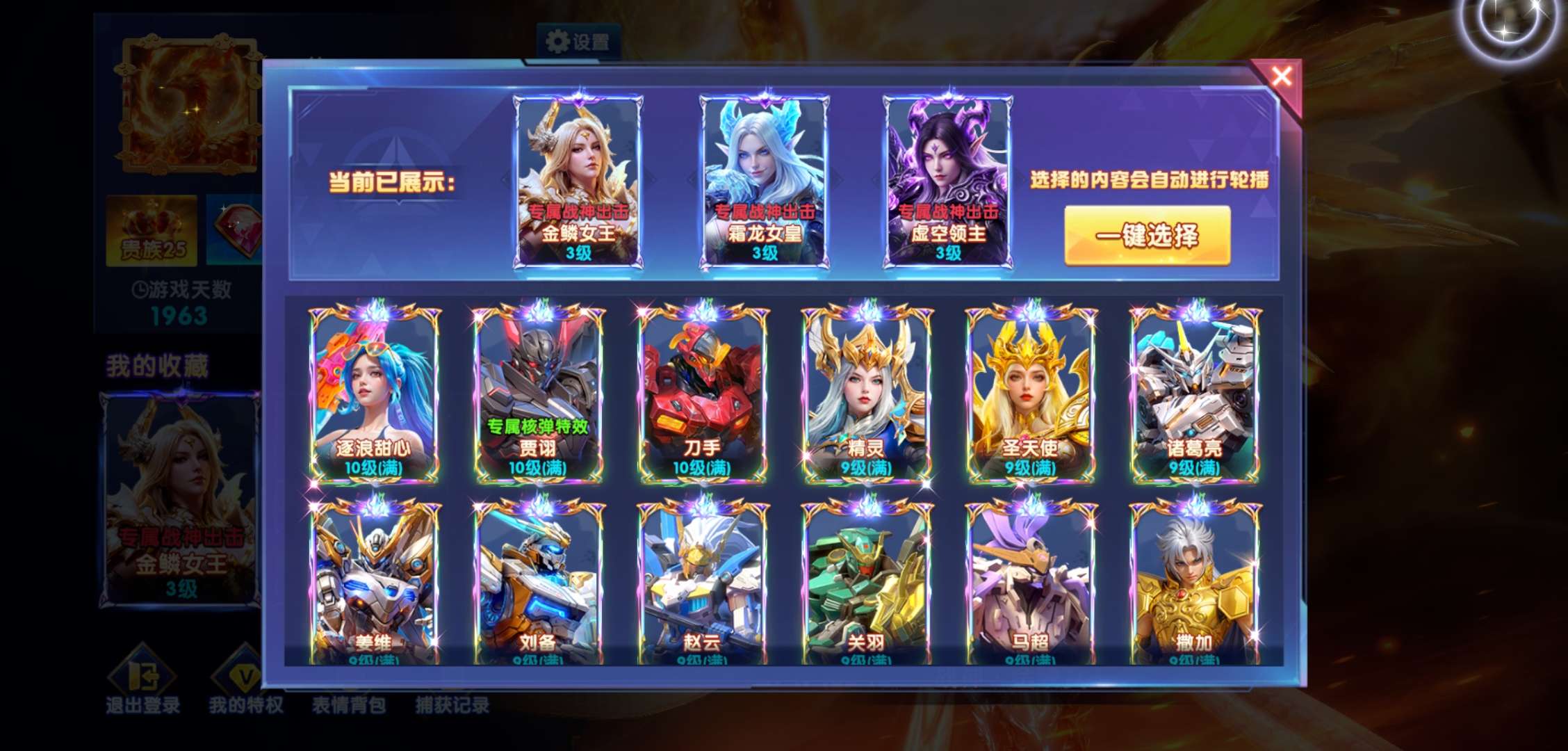 官方贵25,机甲15套,充值170多万,全战神,圣斗士全满,62000炮台,加成2366,9炉子