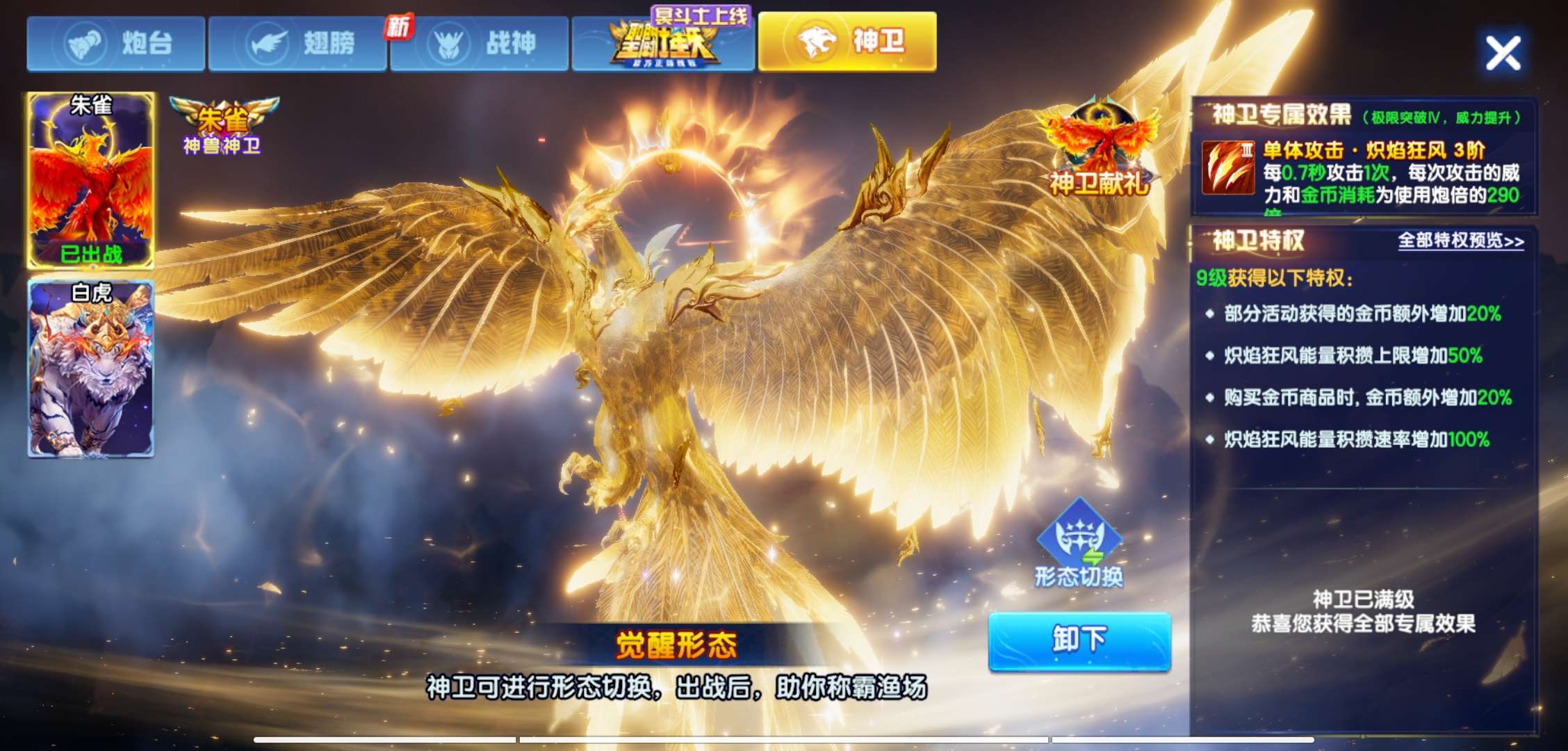 所有战神全有,老天使999新天使333,冥斗士,圣斗士全满9级,神器全9,老虎凤凰99,无人脸过户出