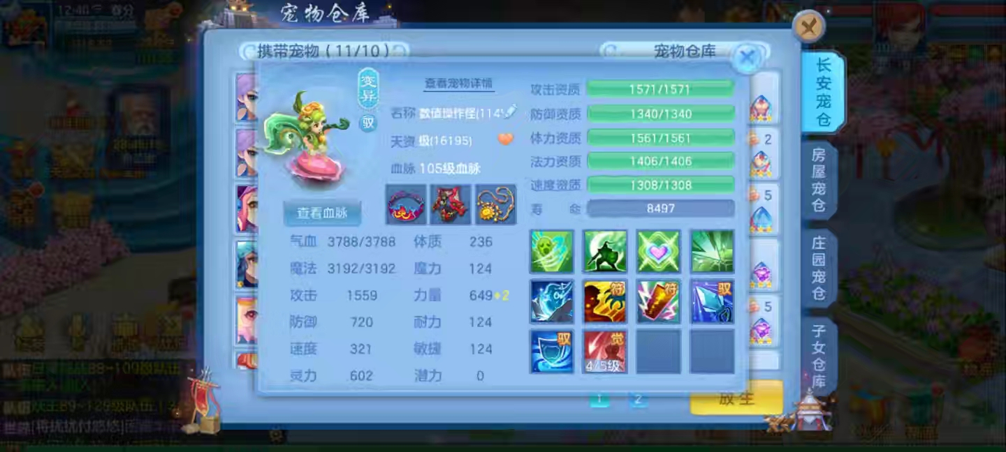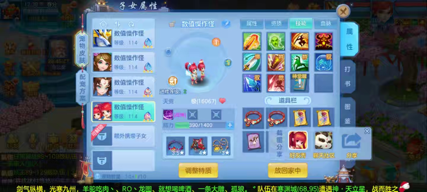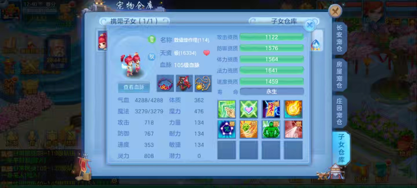 13段方寸,高坐+13宝宝皮肤6技能n+两套装备俩孩子,日常特技齐全,八卡齐全