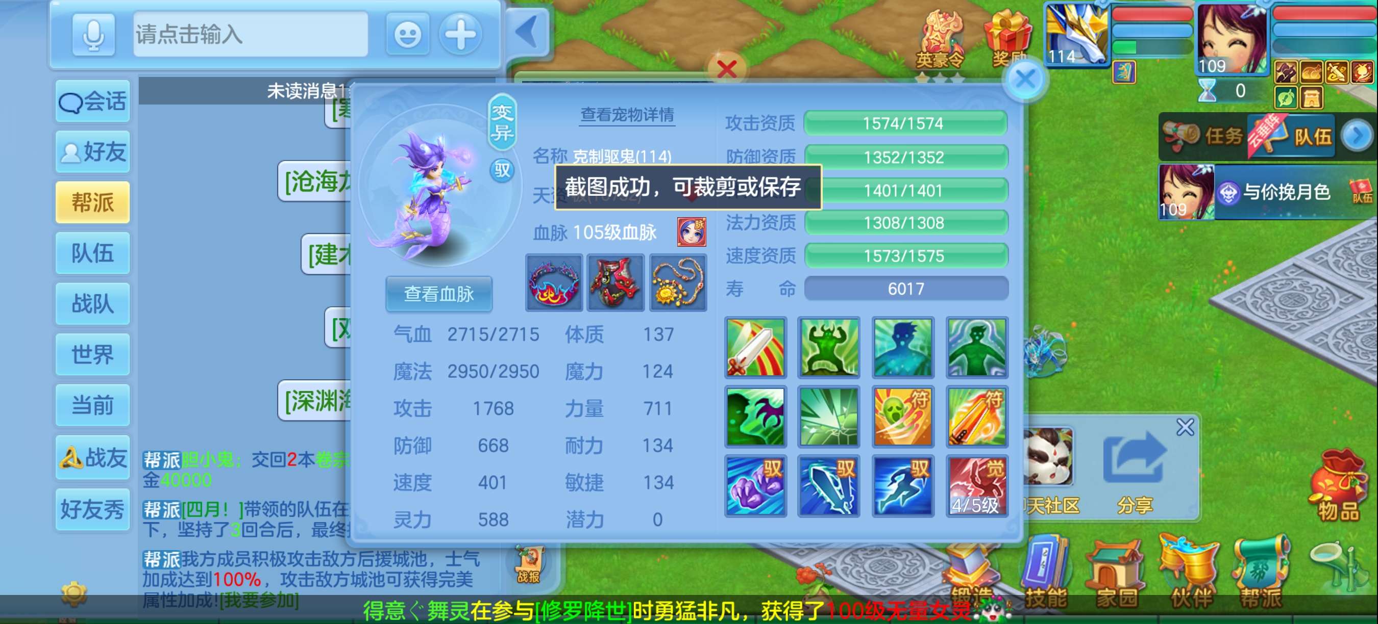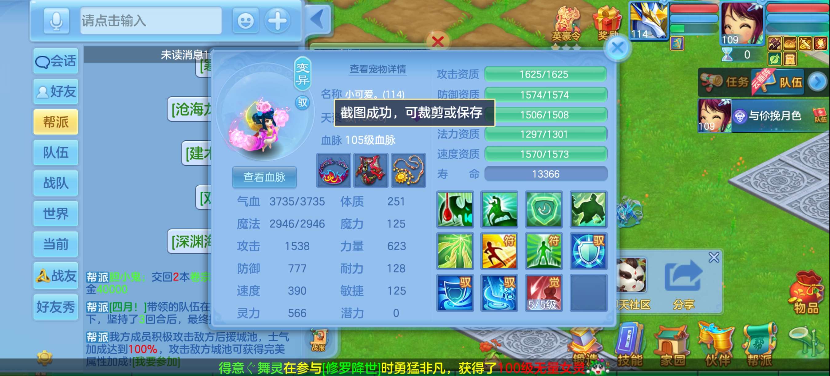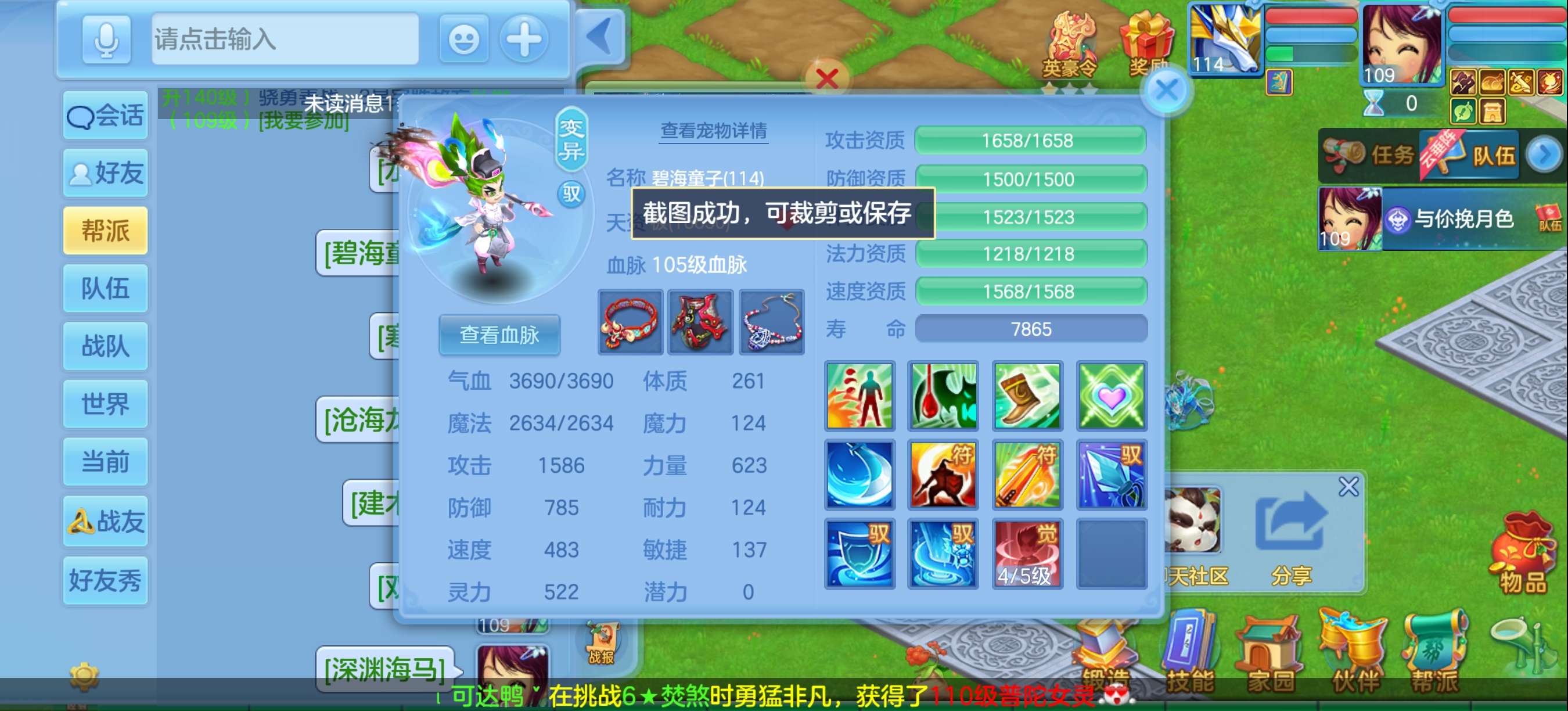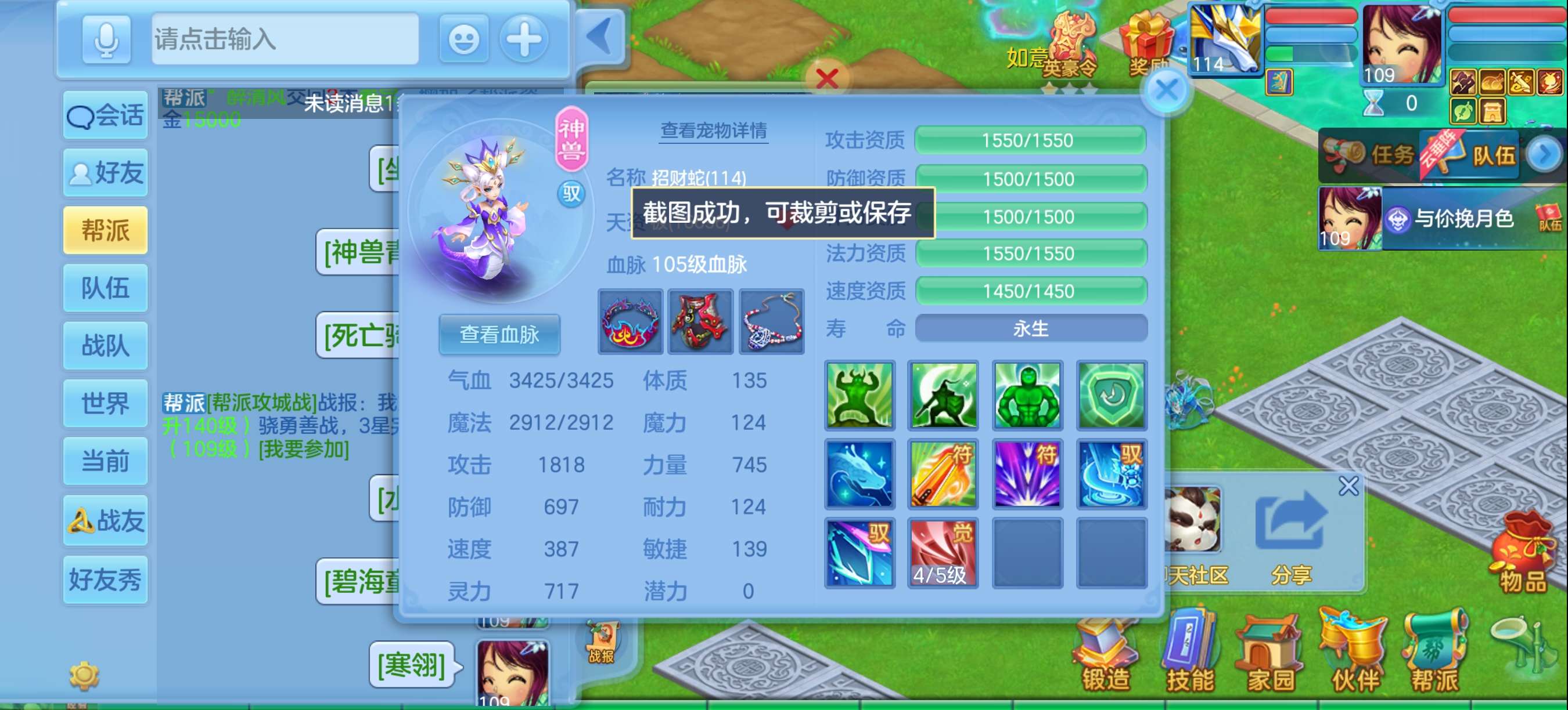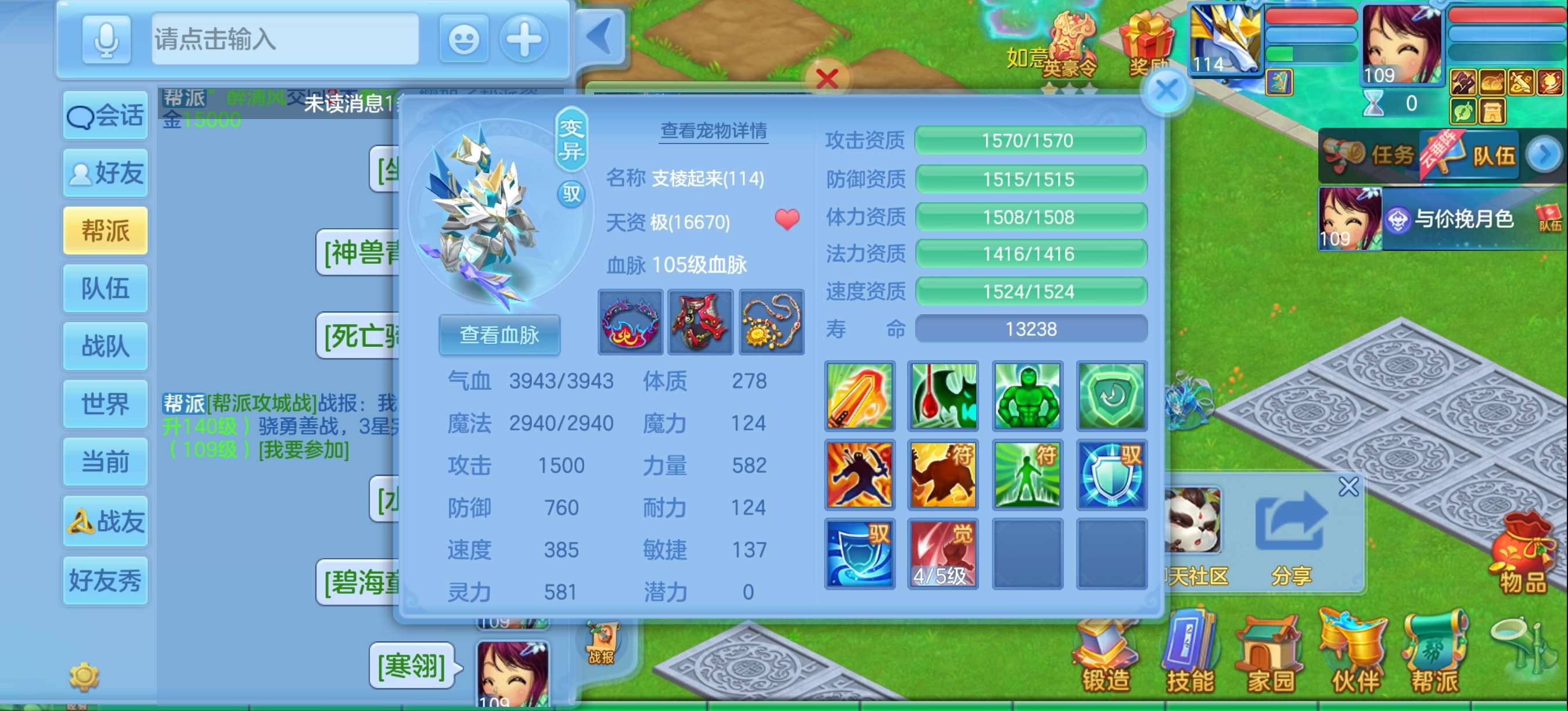109魔王,神兽蛇,啥都能打,很暴力,宝宝血脉有很大提升空间,皮肤基本都有,一年换绑,送保险,高坐骑