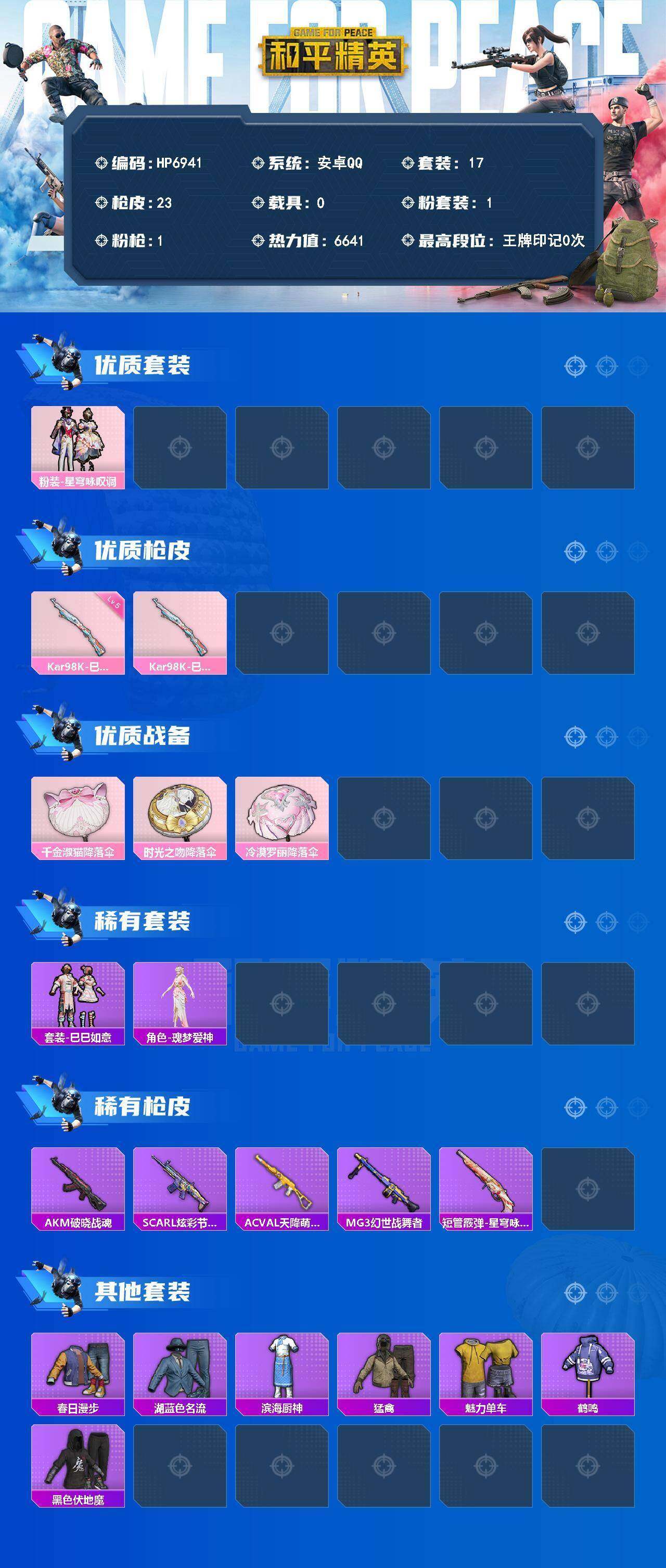 (1粉套1粉枪)地铁满天赋/星穹咏叹调/98K巳巳如意五级/没战神框/HP6941-0粉色飞行器-6641热力值-0王牌印记-17套装-23枪皮