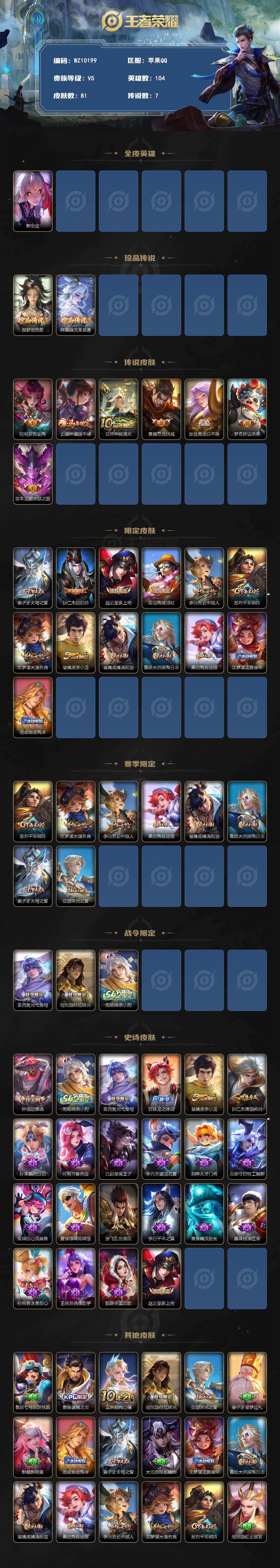 苹果Q-V5-最强王者段位-104英雄-81皮肤-2珍品传说-7传说-21史诗