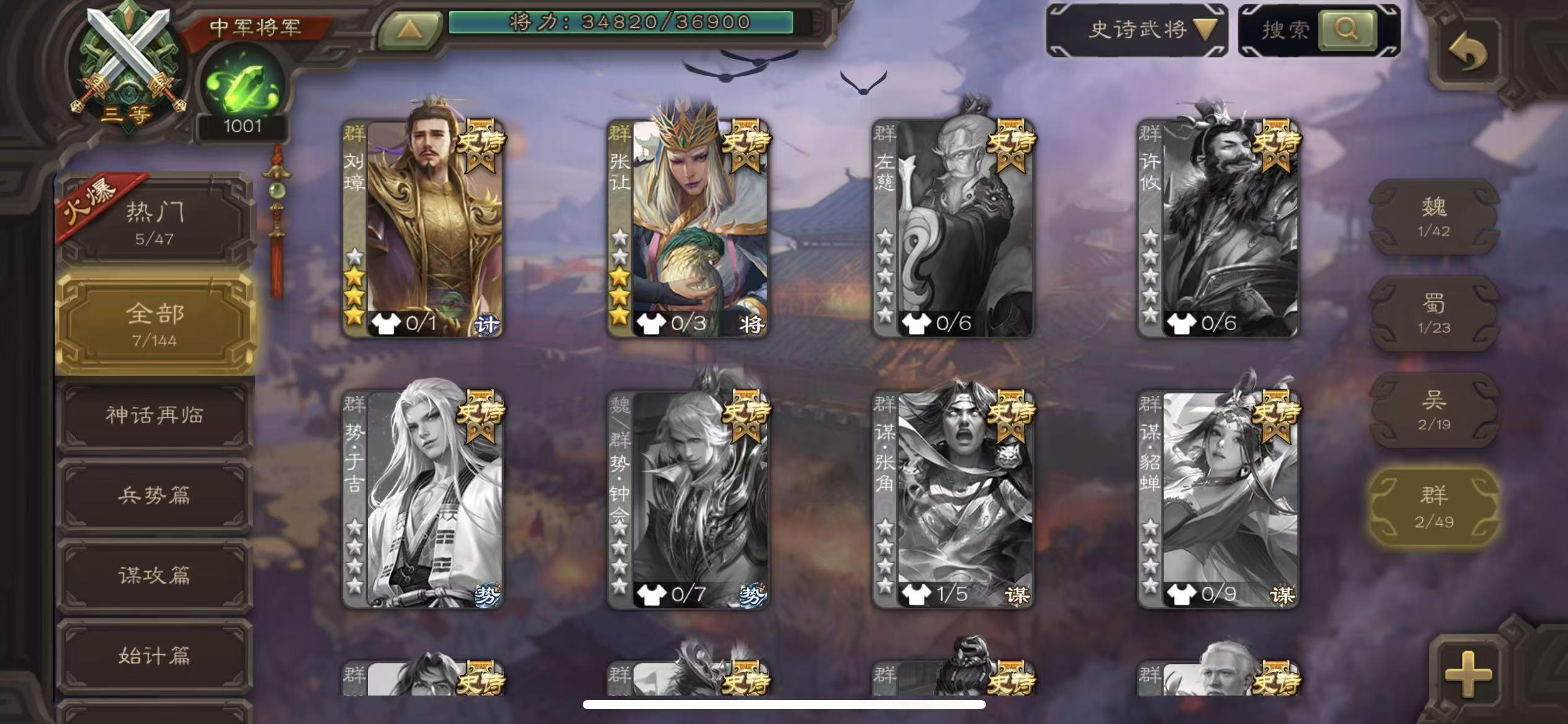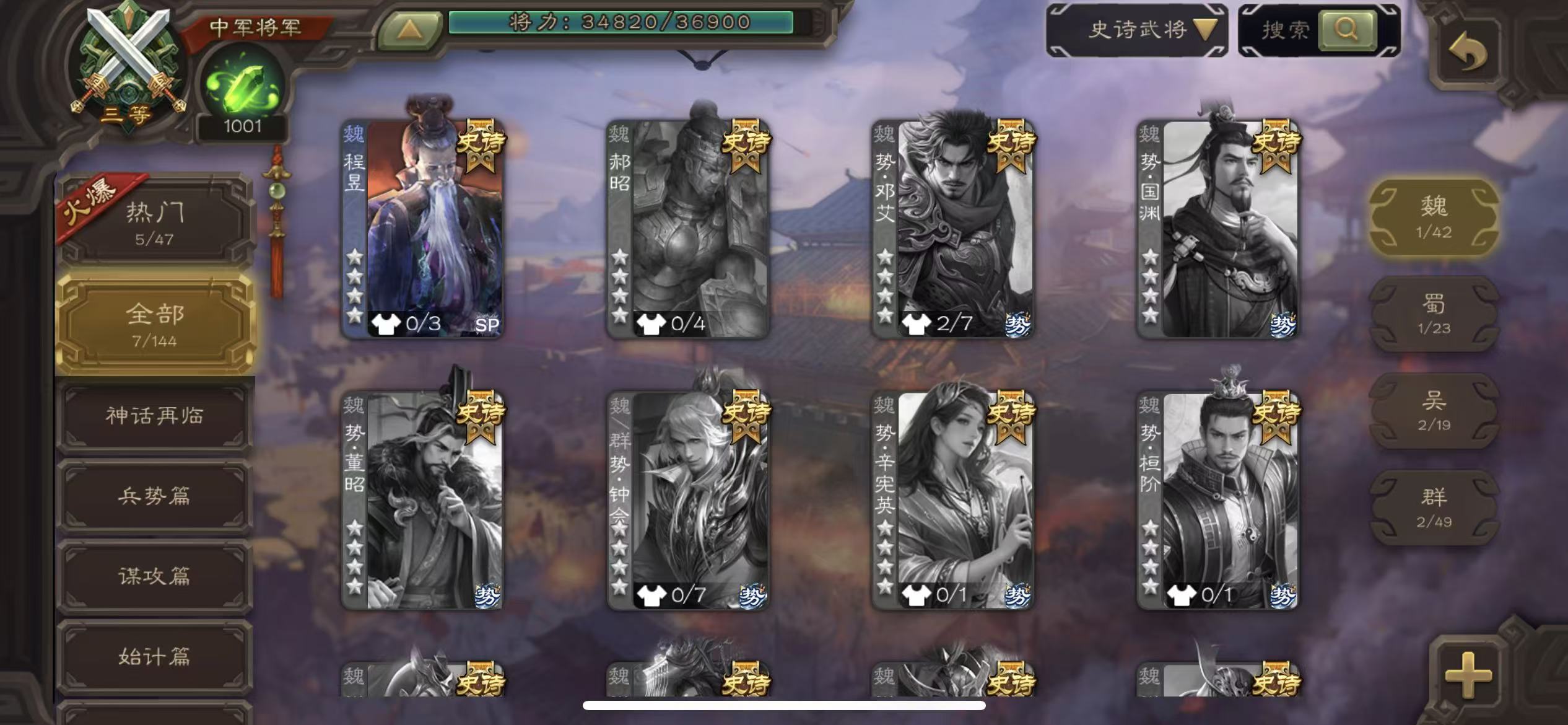 史诗武将数量: