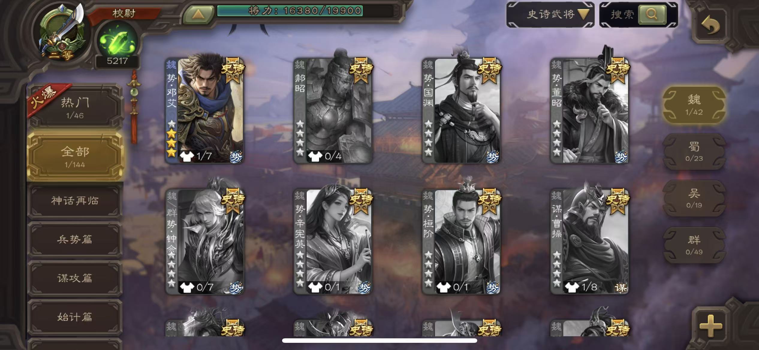 史诗武将数量: