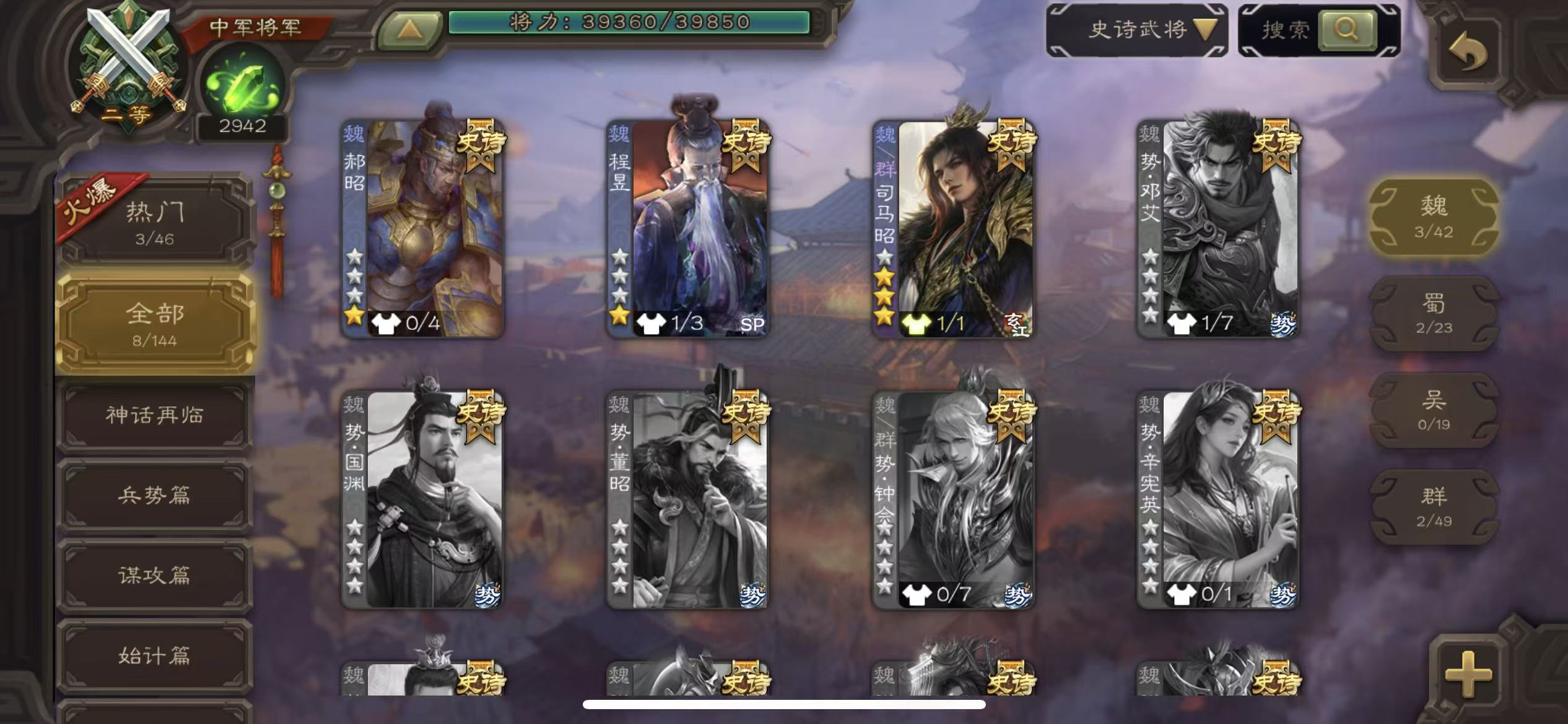 史诗武将数量: