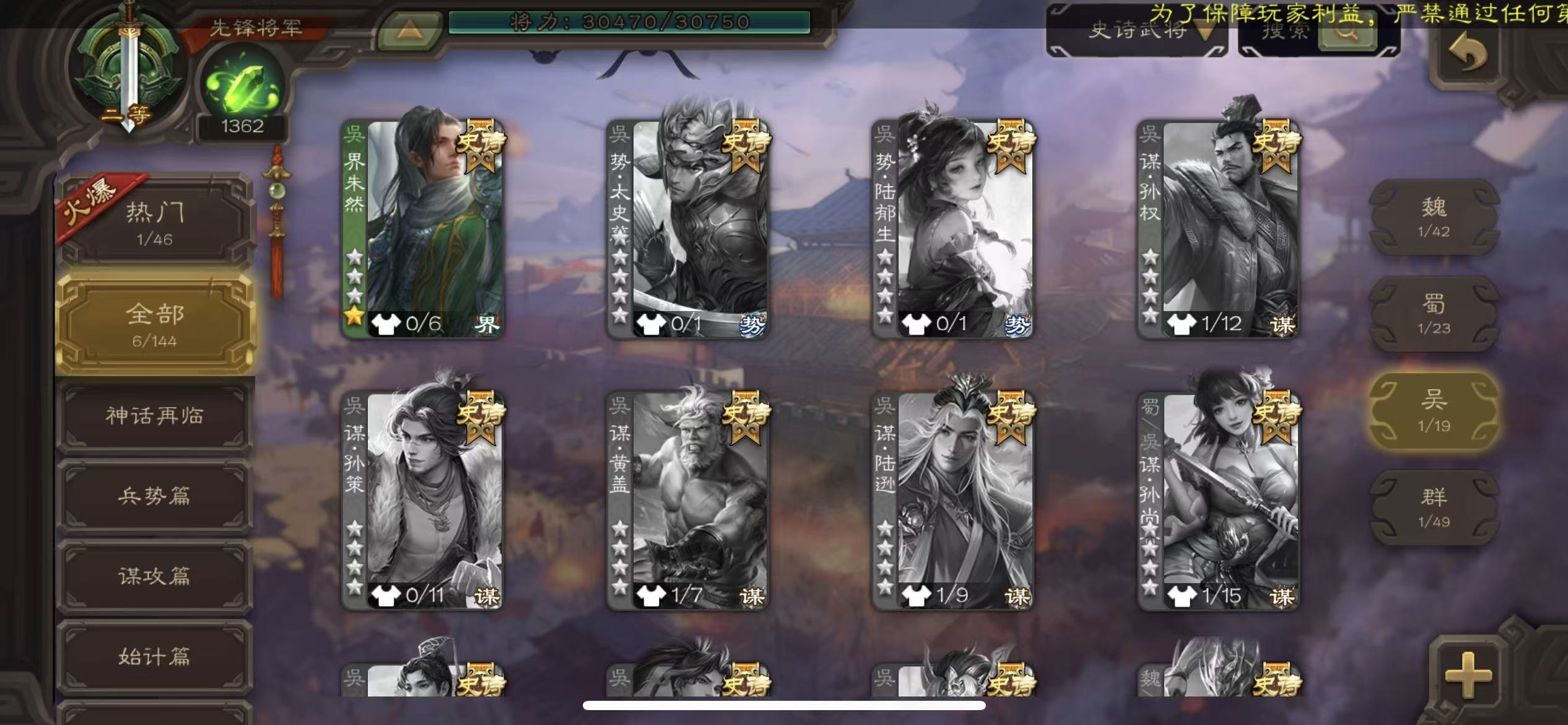 史诗武将数量: