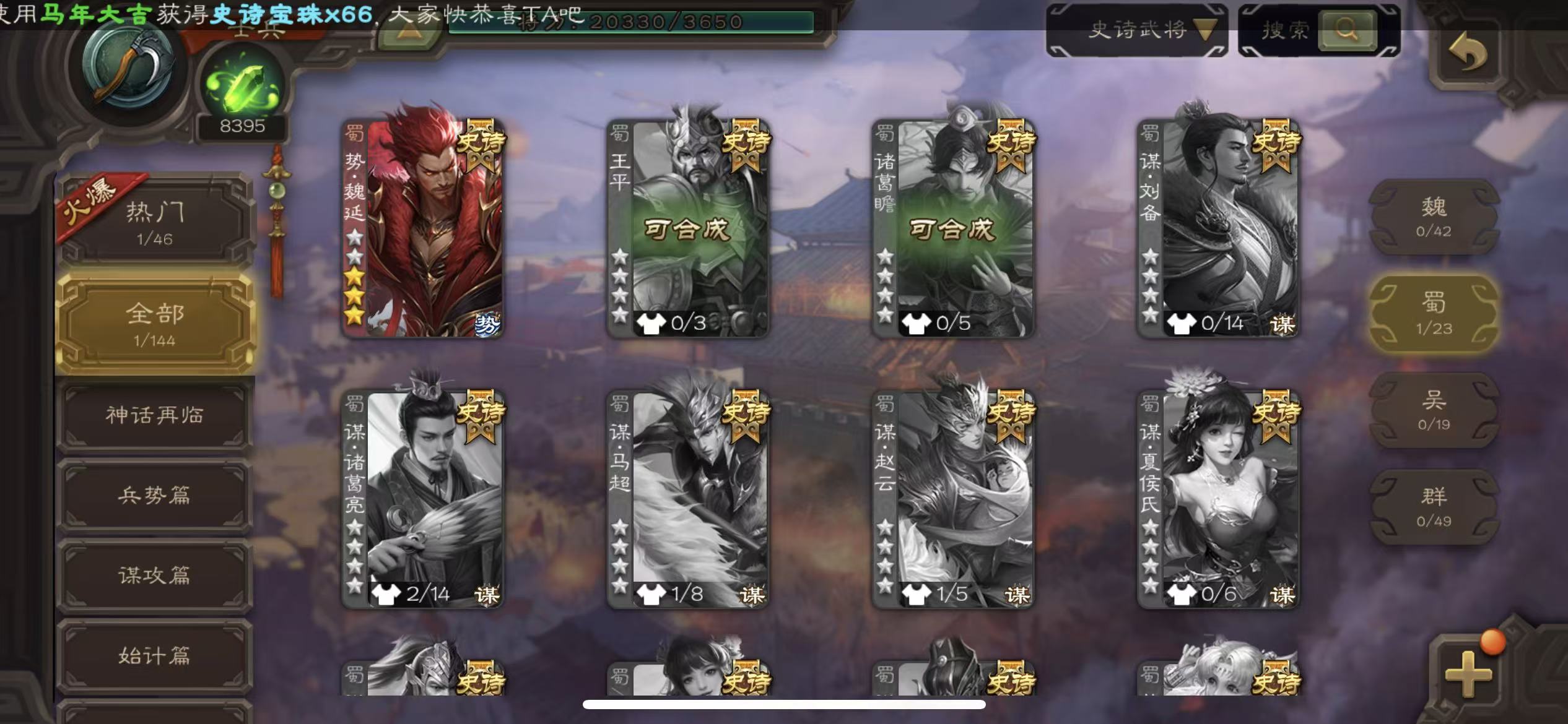 史诗武将数量: