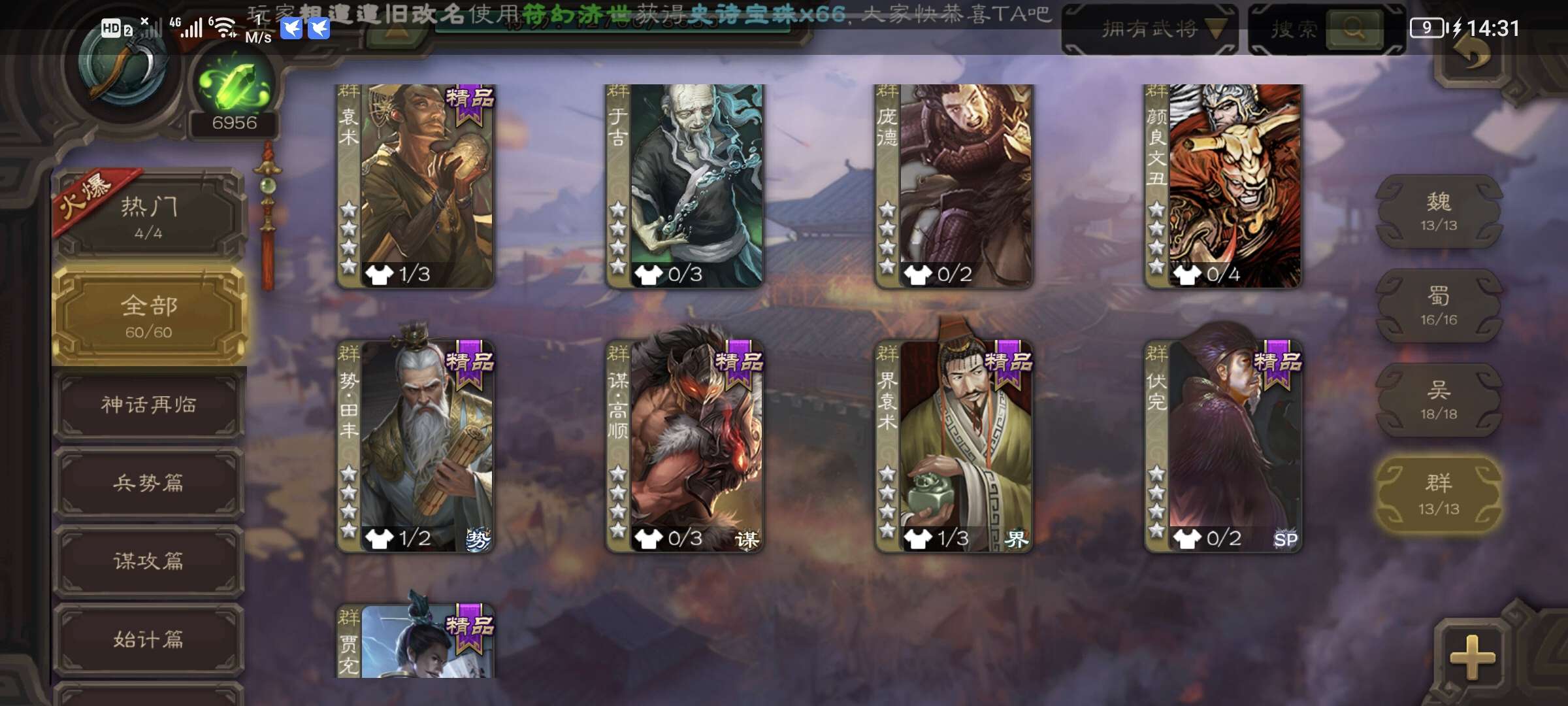 史诗武将数量: