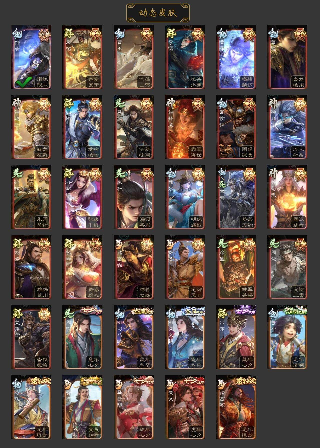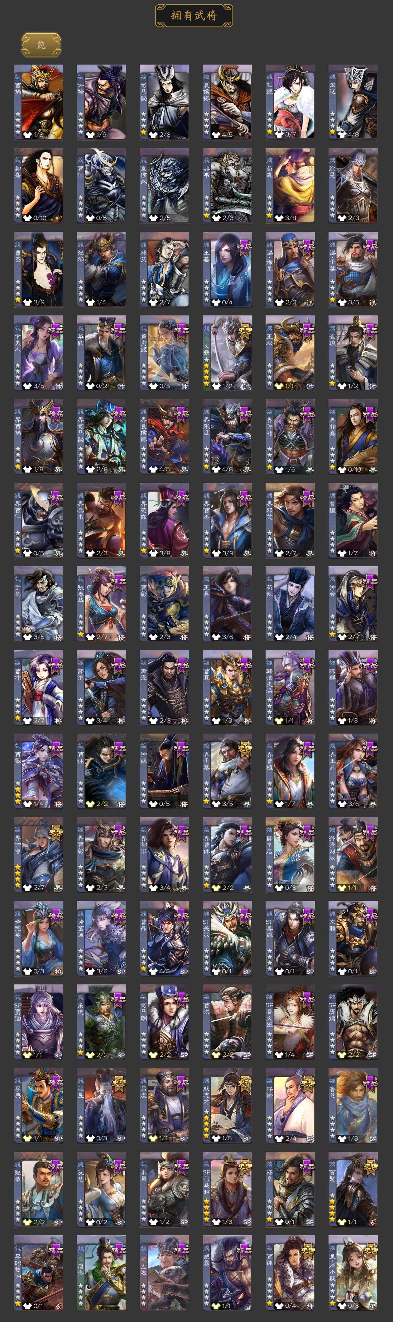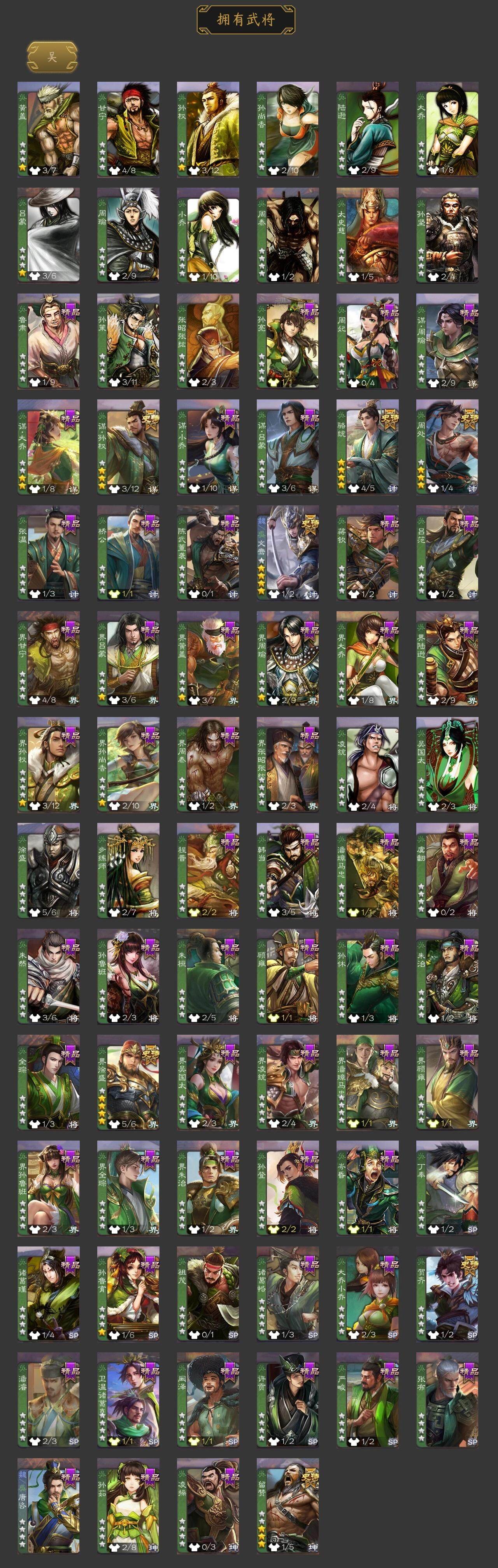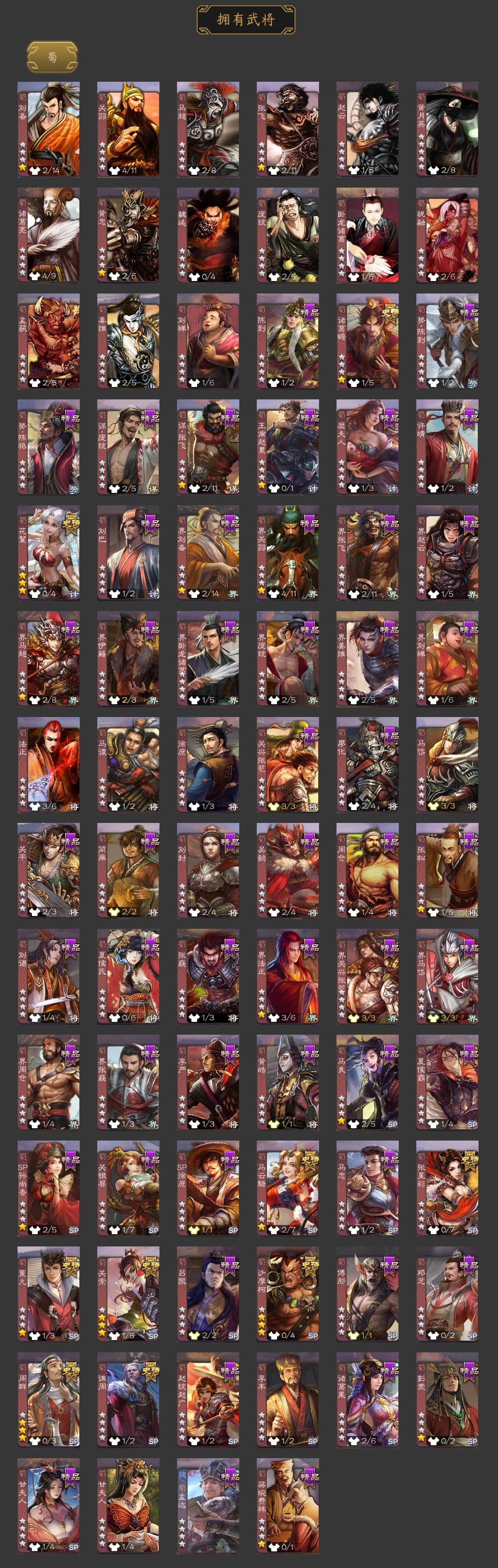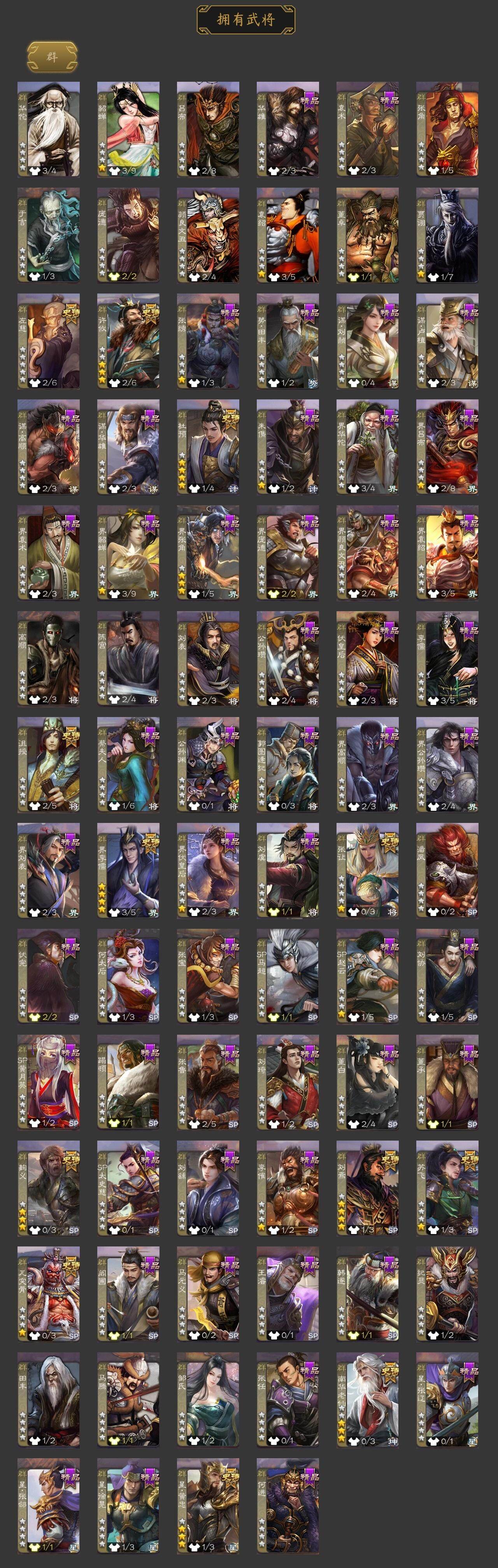 神赵云,神甘宁,神孙策,神荀彧,神诸葛亮,SP司马昭,曹髦,星周不疑,杨修,界钟会,界于禁,曹纯,戏志才,程昱,关索,马云騄,诸葛瞻,周群,张星彩,沙摩柯,谯周,花鬘,董允,周处,骆