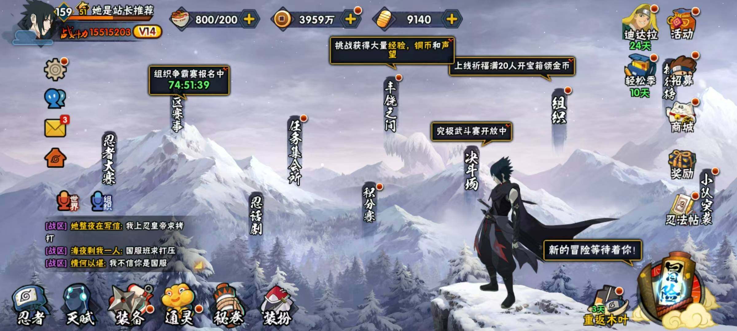 侠隐佐助一千二全套都有,多点券a氪金通,雪山雨隐主场景