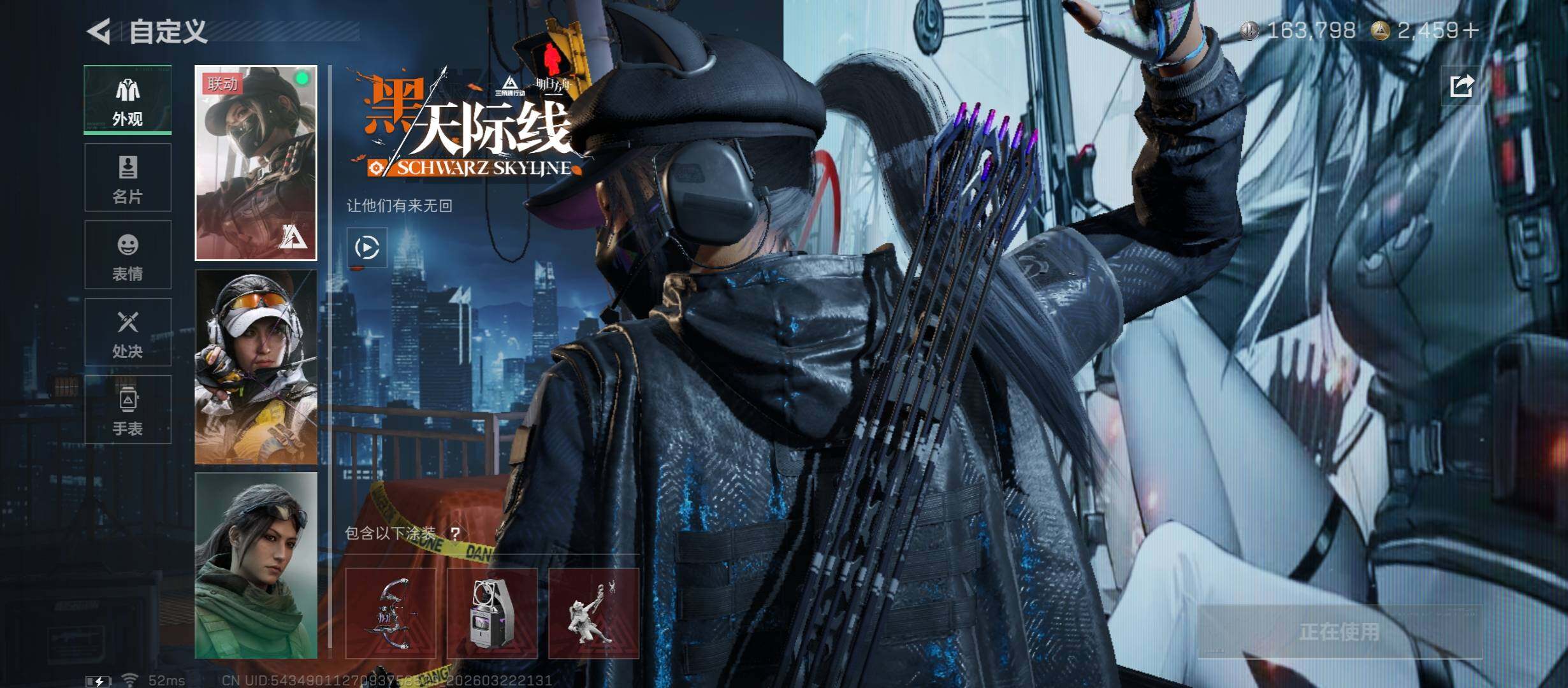 【干员外观】:红狼-蚀金玫瑰,露娜-黑·天际线,蜂医-送葬人·无题密令,深蓝-不破誓约,红狼-电锯惊魂,露娜-金牌射手,乌鲁鲁-荒原猎手