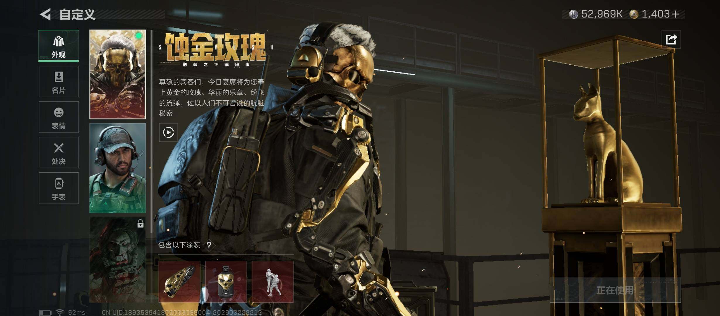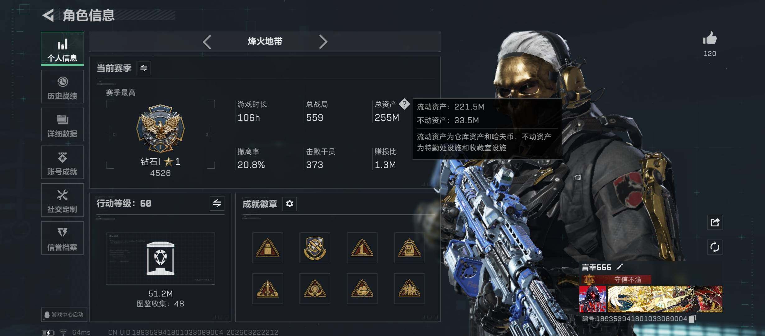 【热门皮肤号:单红+四刀+双典藏枪/总资产255M】【Q区三端互通】【无二次】YXz9595-特勤处:仓库8级/靶场6级/训练中心7级255m总资产-5296w哈夫币-60烽火等级-钻石-50战场等级-上等兵