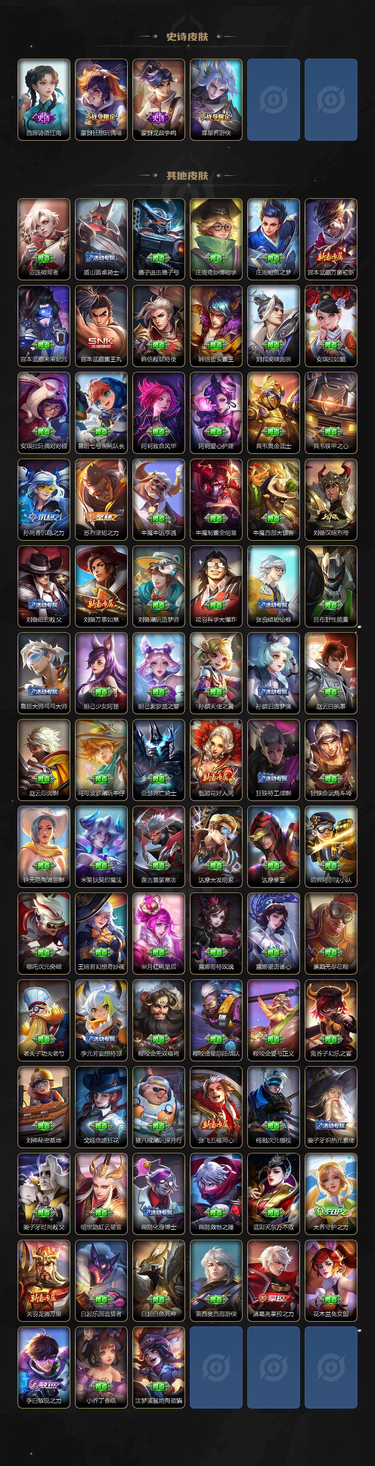 【荣耀典藏】:武则天英雄,武则天倪克斯神谕,小乔天鹅之梦,孙尚香杀手不太冷,鲁班七号星空梦想,李白鸣剑曳影,诸葛亮星域神启
