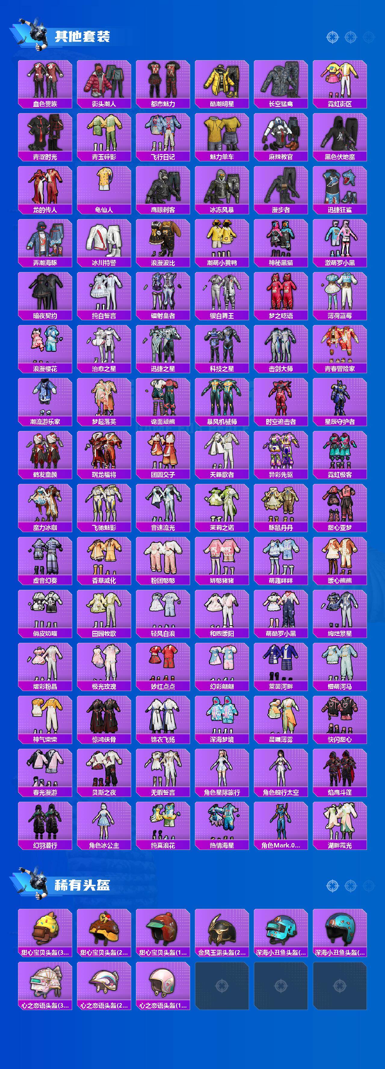【粉色套装】:粉装-深海曼妙,粉装-天使彩虹糖,粉装-缤纷油彩,粉装-新星烈龙,粉装-冰霜白皇,粉装-彩虹鹿灵,粉装-黄伞悠悠,粉装-黑伞漫漫,粉装-飒粉甜心,角色-呆萌星弥,角色-小可学