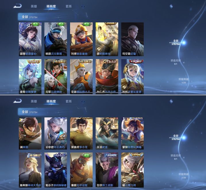 MWZ106116有二次 【370皮肤 传说16 白虎志 星元2星际治安官 金色仲夏夜 典藏1夏侯惇 V8】苹果Q-370皮肤-127英雄