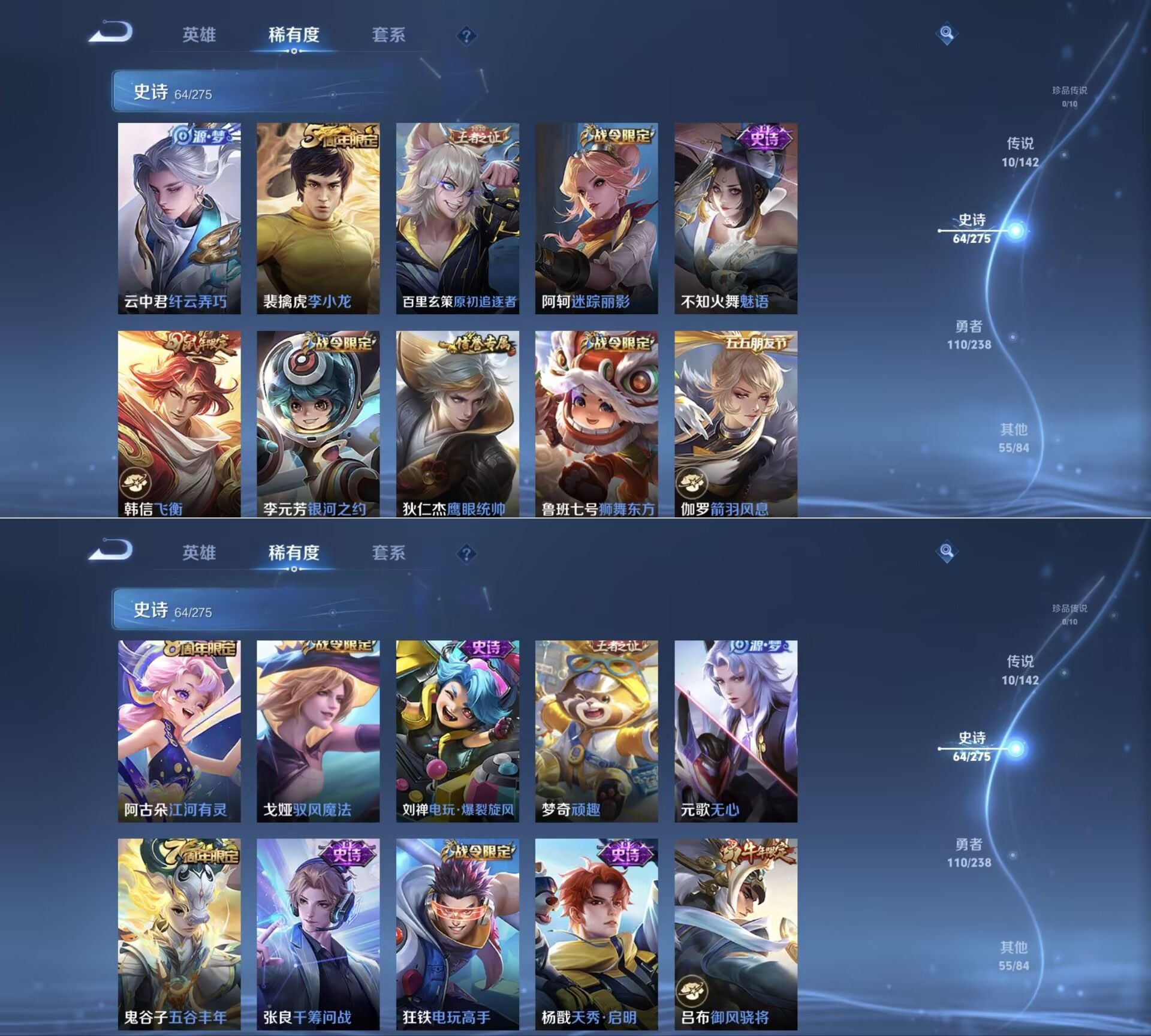 有二次【V7 127英雄 240皮肤 1典藏 10传说