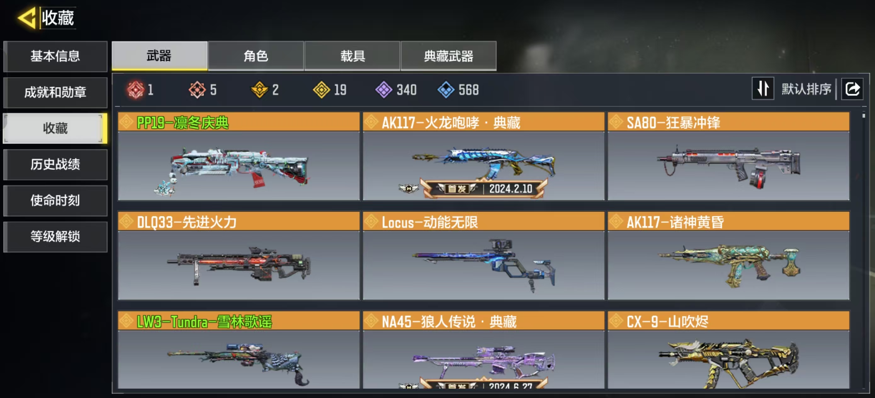 【传说武器】LW3-Tundra-雪林歌谣,电棍-永恒炽热,AK47-火箭炮,PKM-麋鹿,DLQ33-先进火力,M13-紫炎舞,CX-9-
