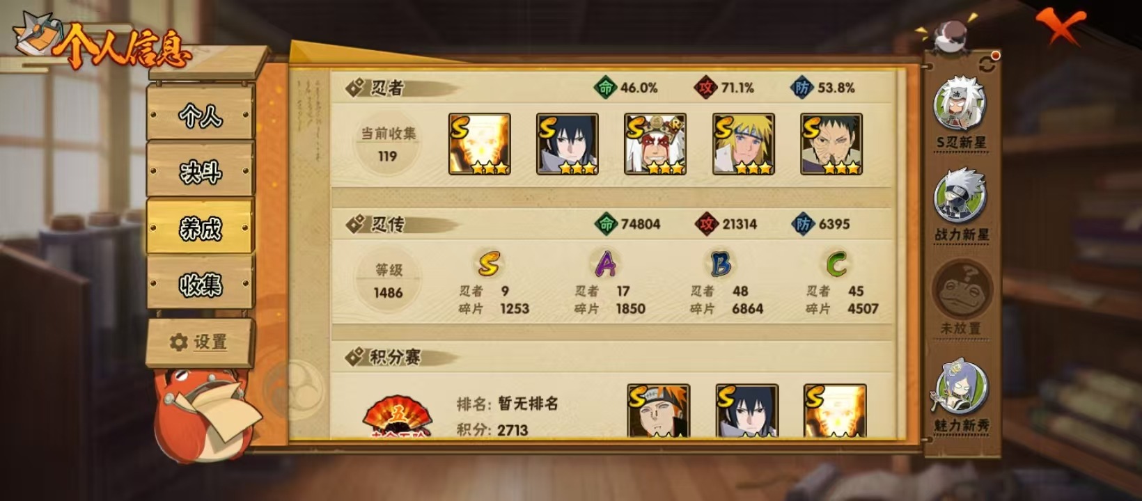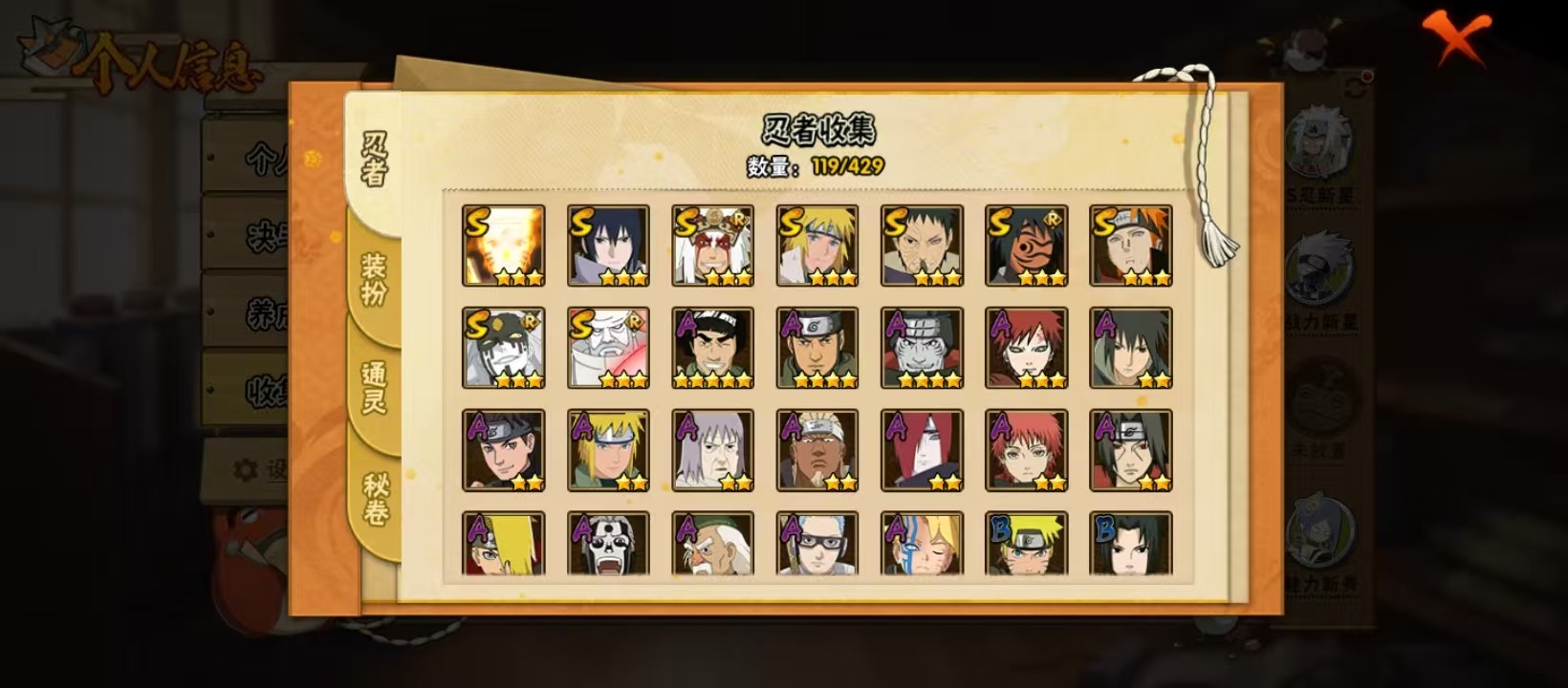 【S级忍者】大筒木桃式,宇智波佐助「永恒万花筒」,神秘面具男 「红夜之刃」,大筒木金式「博人传」,漩涡鸣人 「九喇嘛连结」,宇智波带土 「忍界大战」,自来也 「舞之豪杰」,佩恩「天道」,波风水门