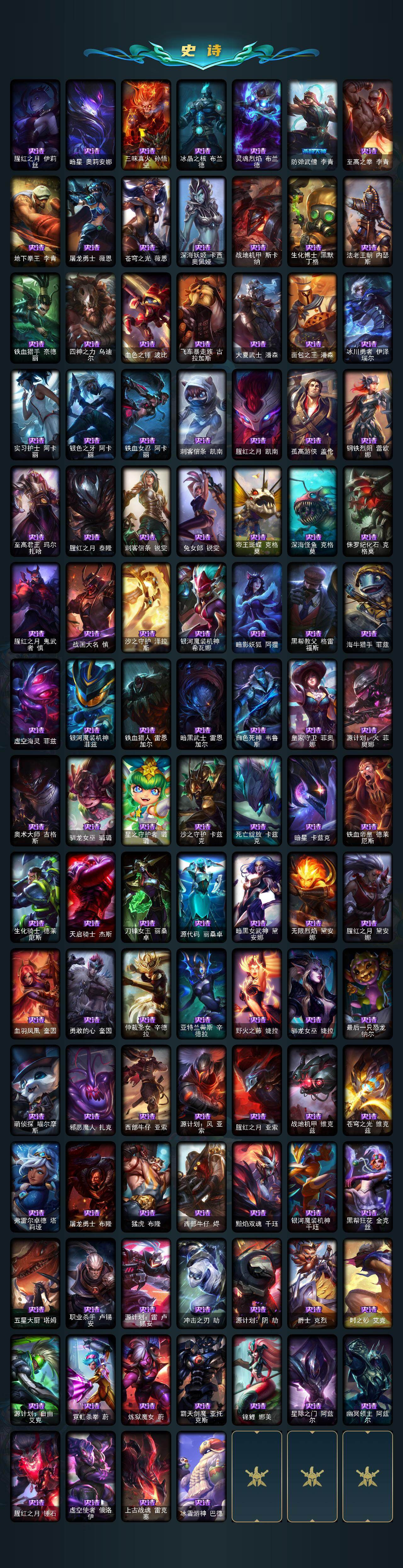 【龙瞎】大师段位-172英雄-612皮肤-137炫彩-2终极-36神话-99限定-69传说-165史诗