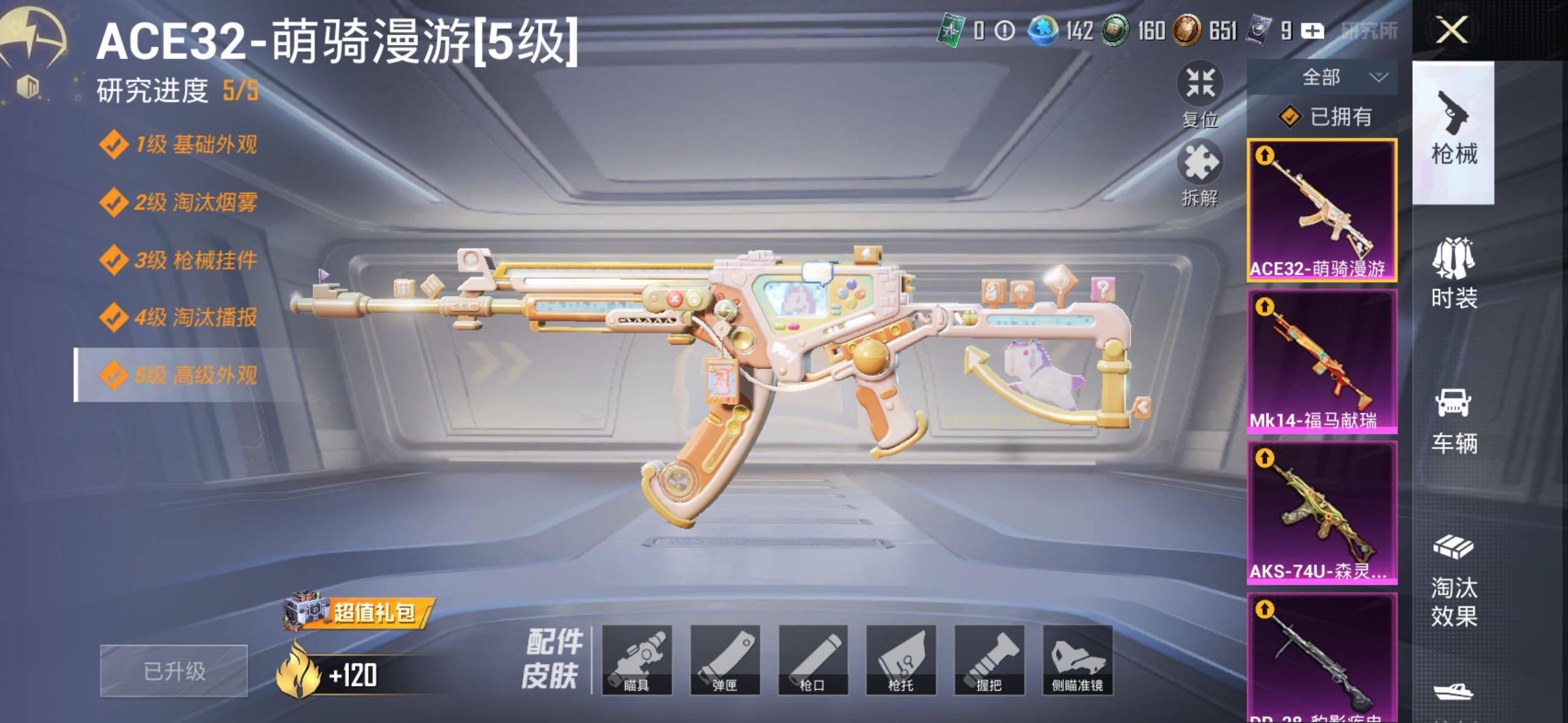 168套装/枪械6/装备208/战备144/王牌印记9/热力值6