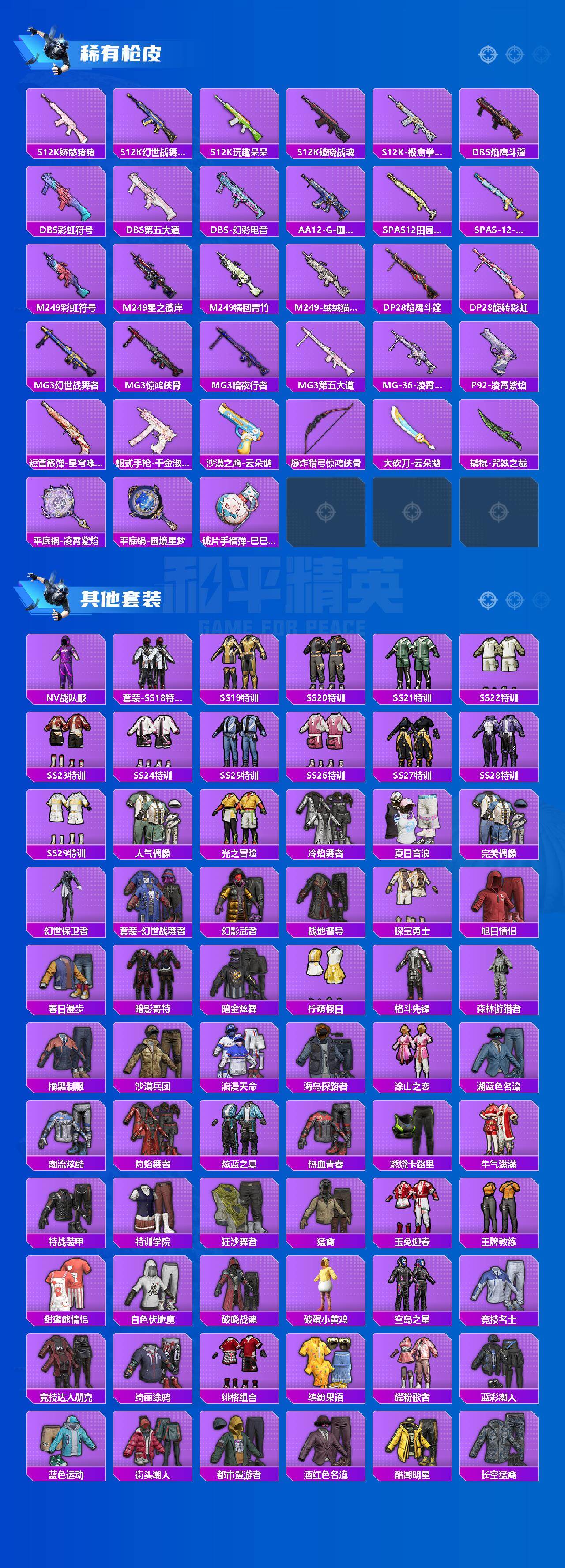 【HP2500】195套装/枪械18/装备332/战备182/王牌印记11/热力值79137/四级SCAR-L-梦幻火箭/五级SCAR-L-锦绣绵绵/五级M416-电玩时刻/五级GROZA-镜光银凌/二级AUG-星之彼岸/五级M762-青锋波束/二级ACE32-萌骑漫游/五级UMP45-量子极限/五级汤姆逊-热量炸弹/五级AKS-74U-森灵之息/五级Kar98K-巳巳如意/五级Mk14-甜梦熊击/五级Mk14-福马献瑞/七级AMR-智耀战神/五级DP-28-豹影疾电/四级MG3-洛神天依/二级