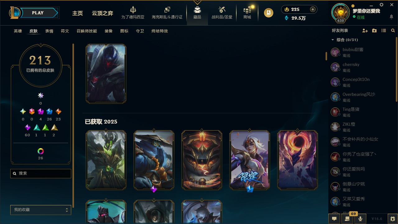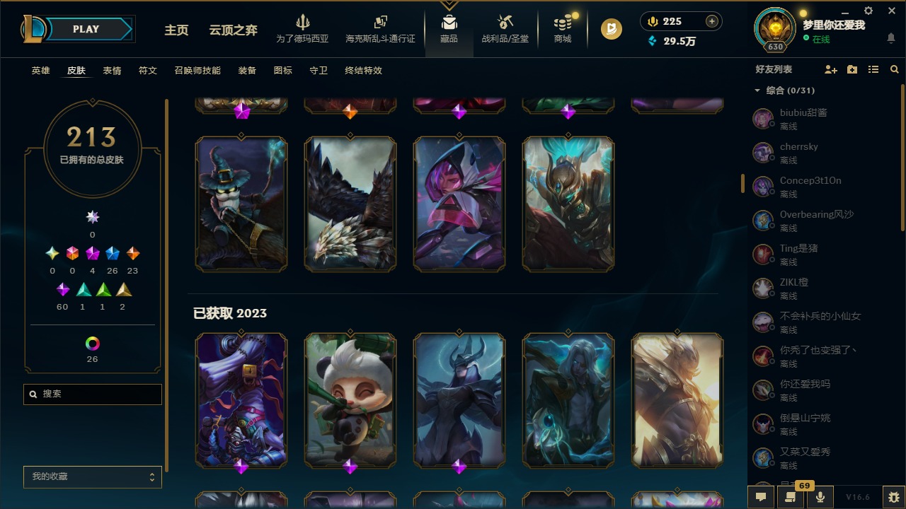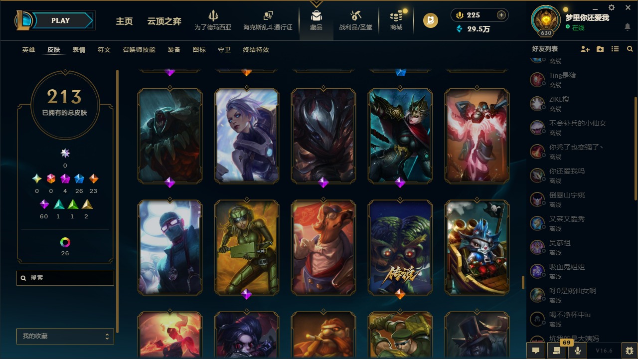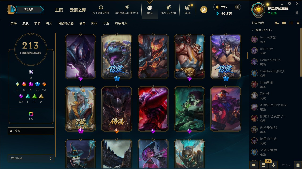 4神话 27限定 23传说 60史诗 213皮肤 32炫彩 17