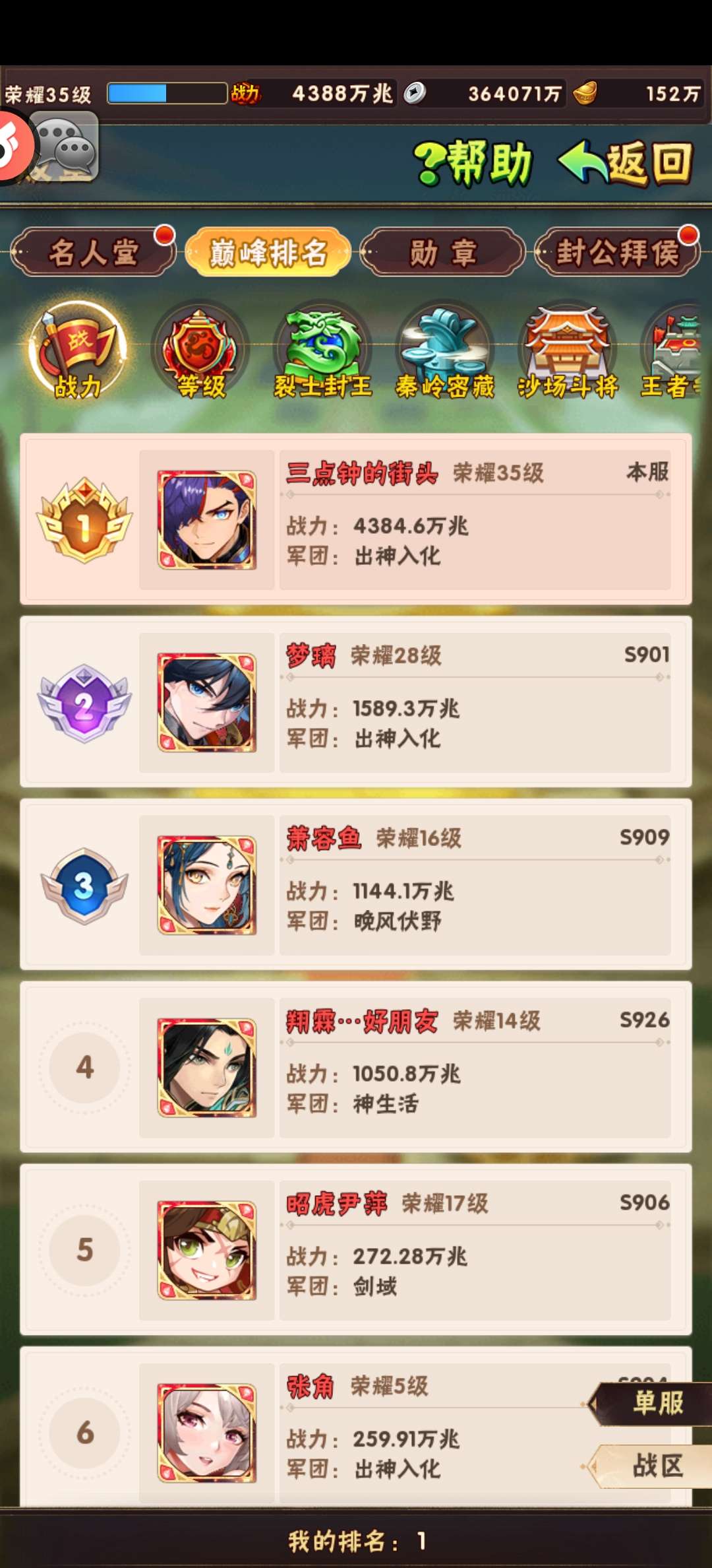 竞技场排名:
