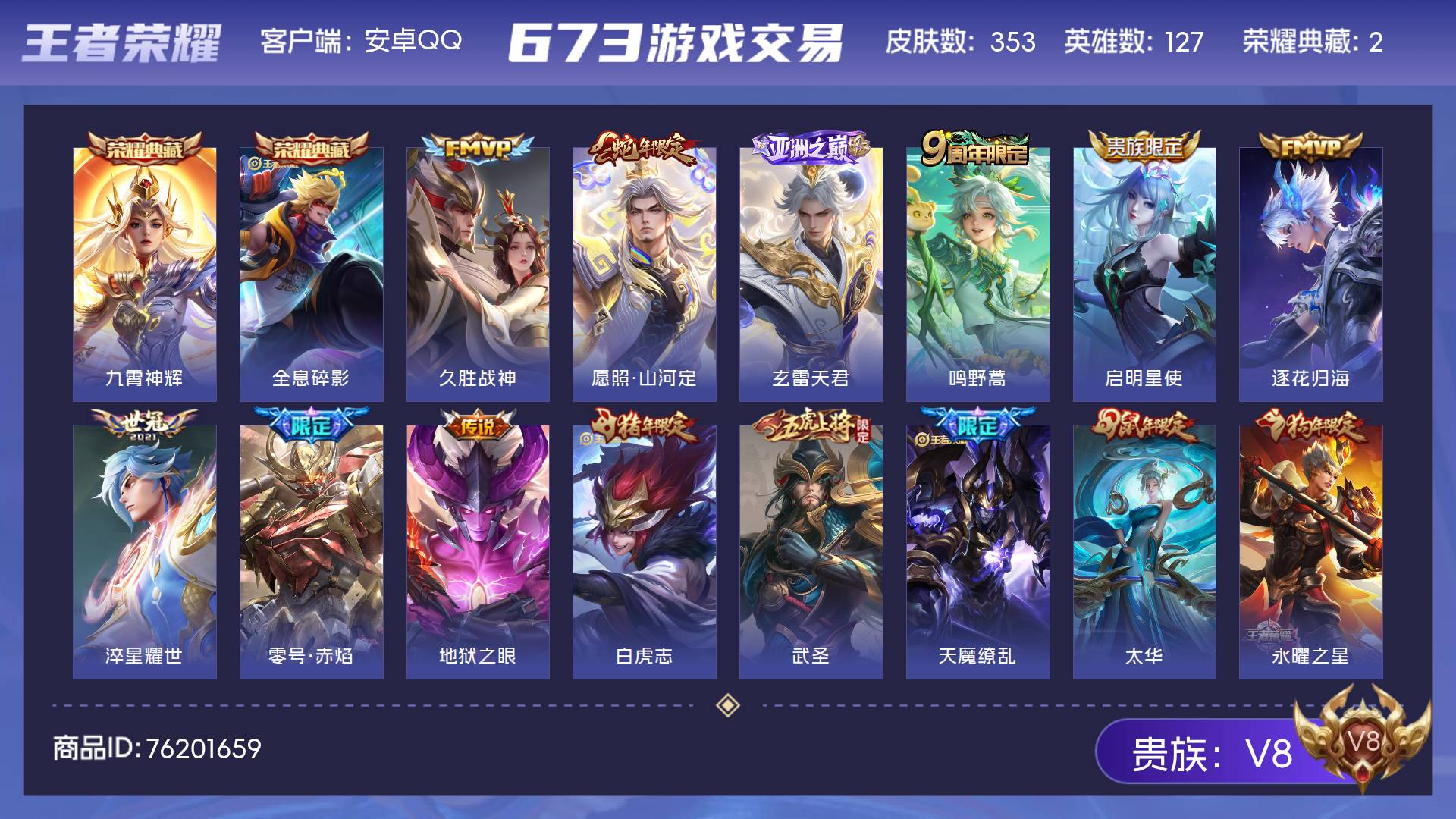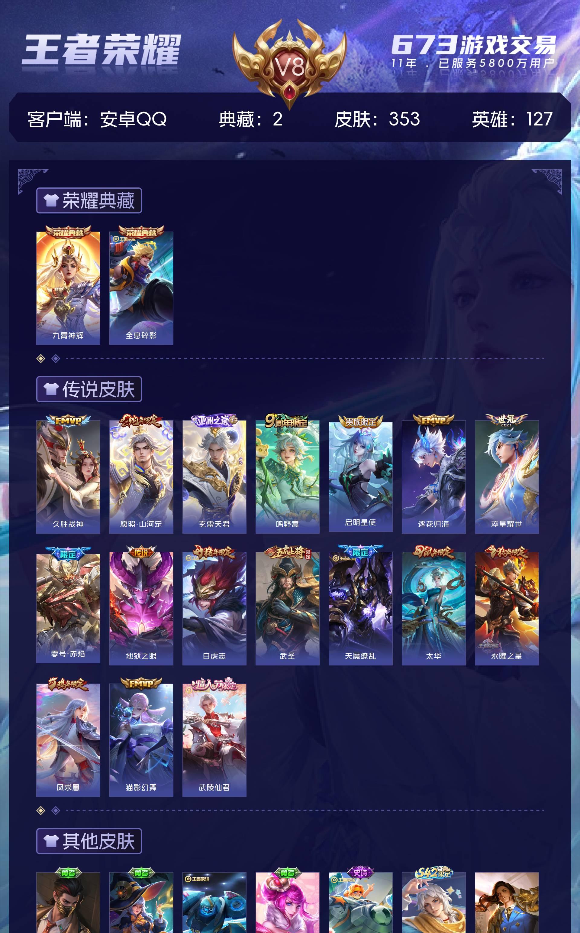 V8-353皮肤2典藏17传说-127英雄【2水晶】九霄神辉 全息碎影