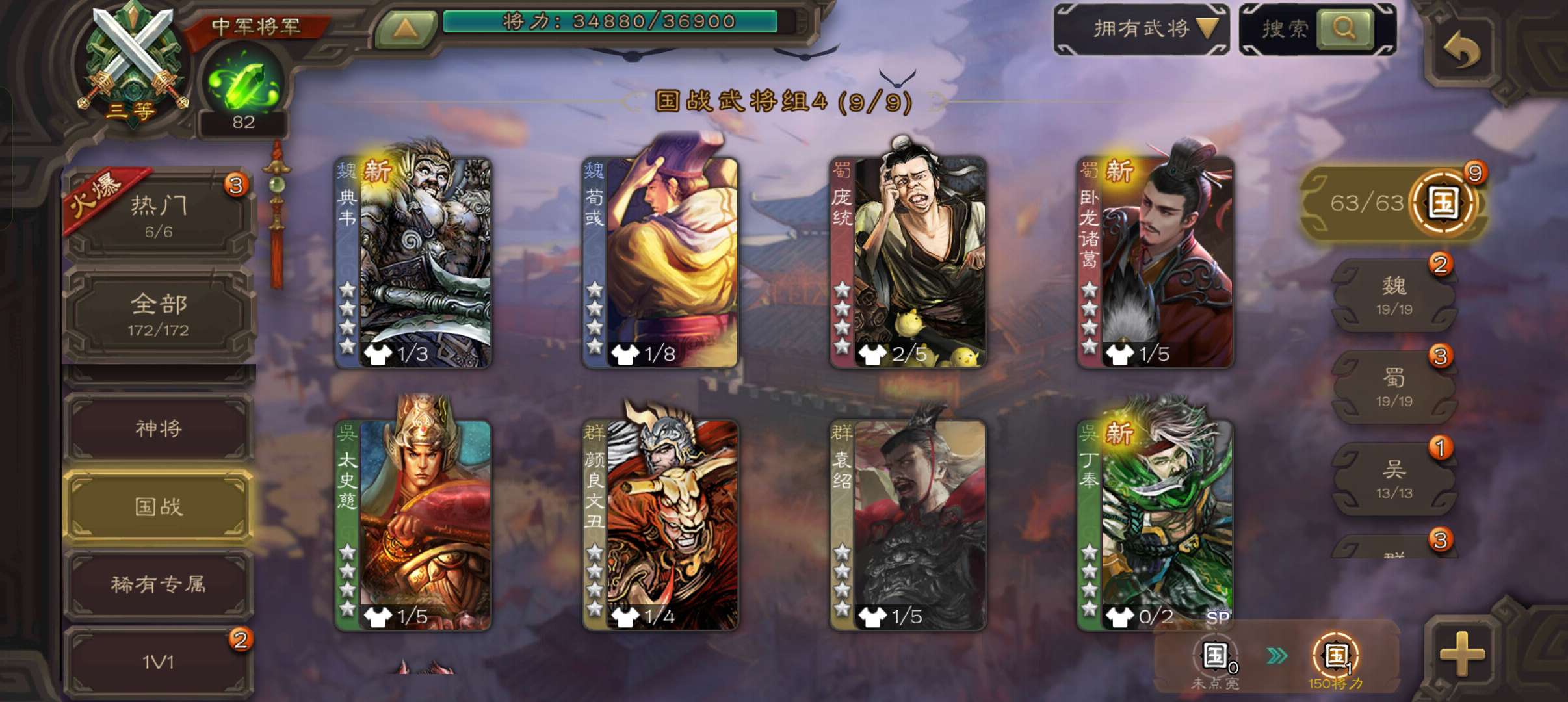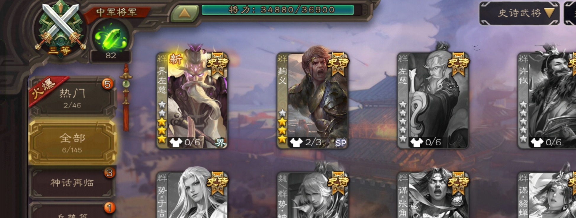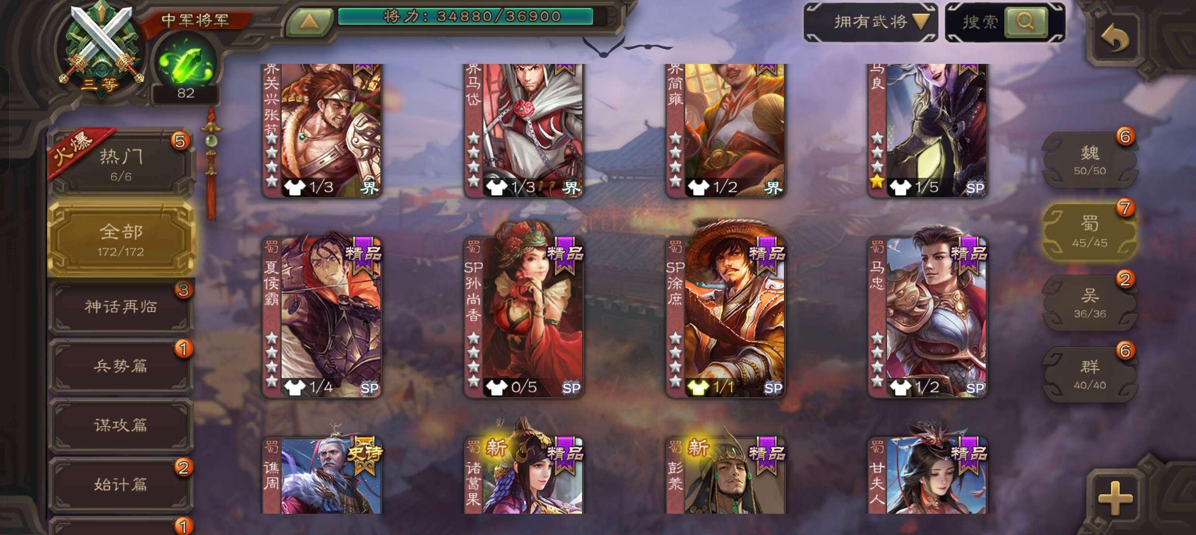 8万羽毛6万豆,天工谋黄月英,谋关羽回廊动白马界左慈神吕布谯周程昱6史诗中军,神周瑜甘夫人172将