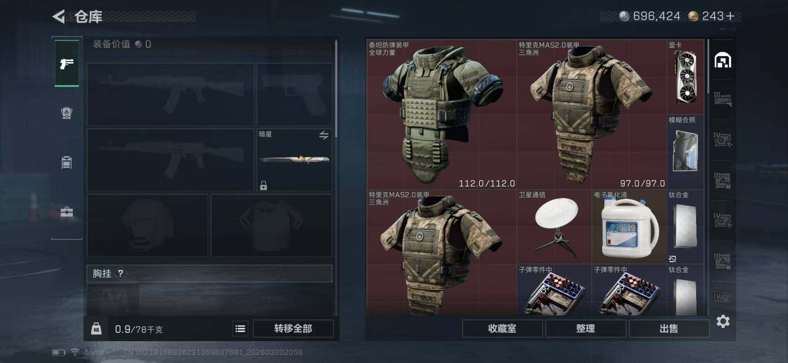 【SJ1484】130m总资产-696k哈夫币-60烽火等级-黑鹰-26战场等