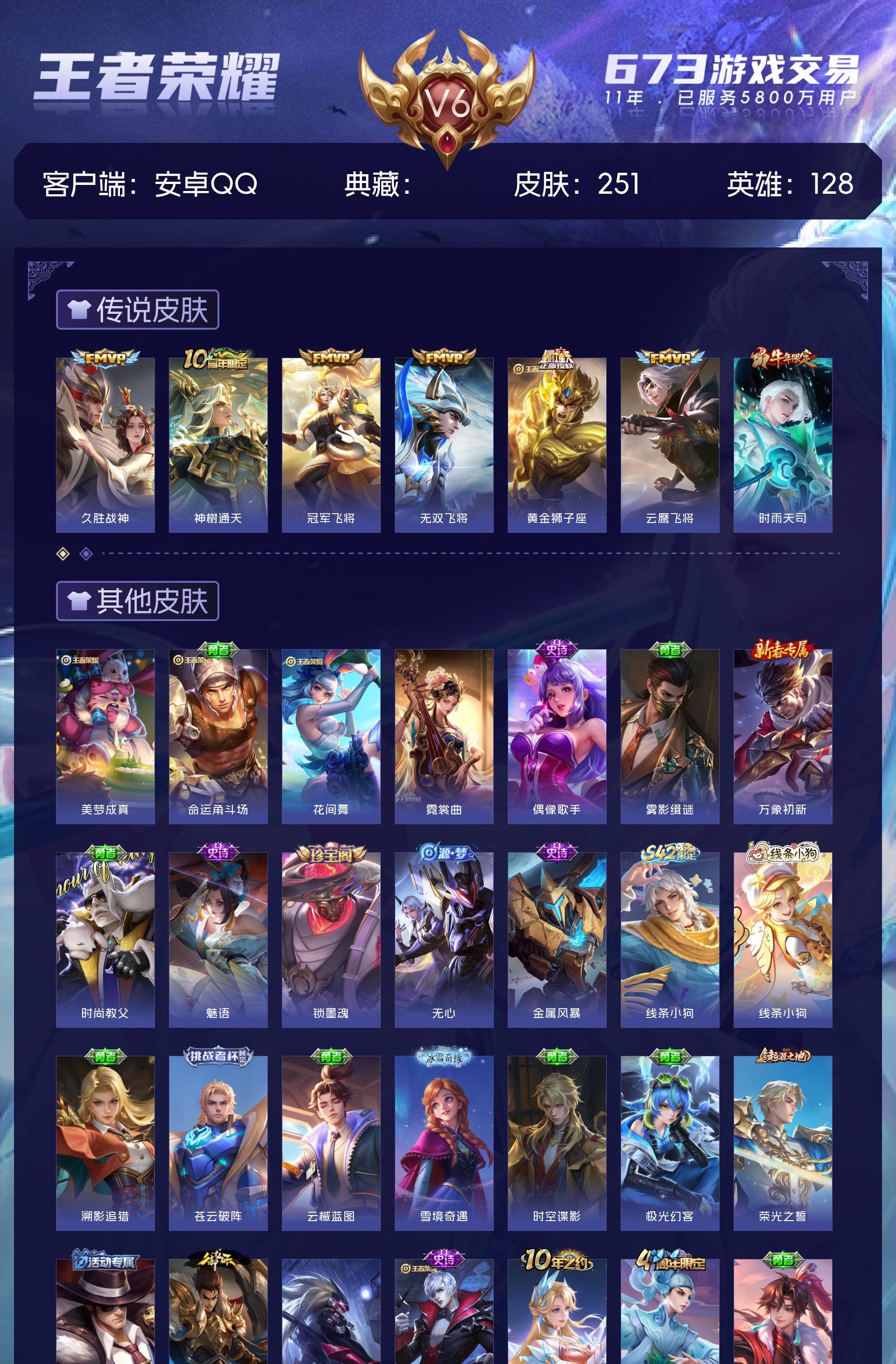 可二次-V6-128英雄-251皮肤-7传说-78史诗-85限定-5按键-4400星币