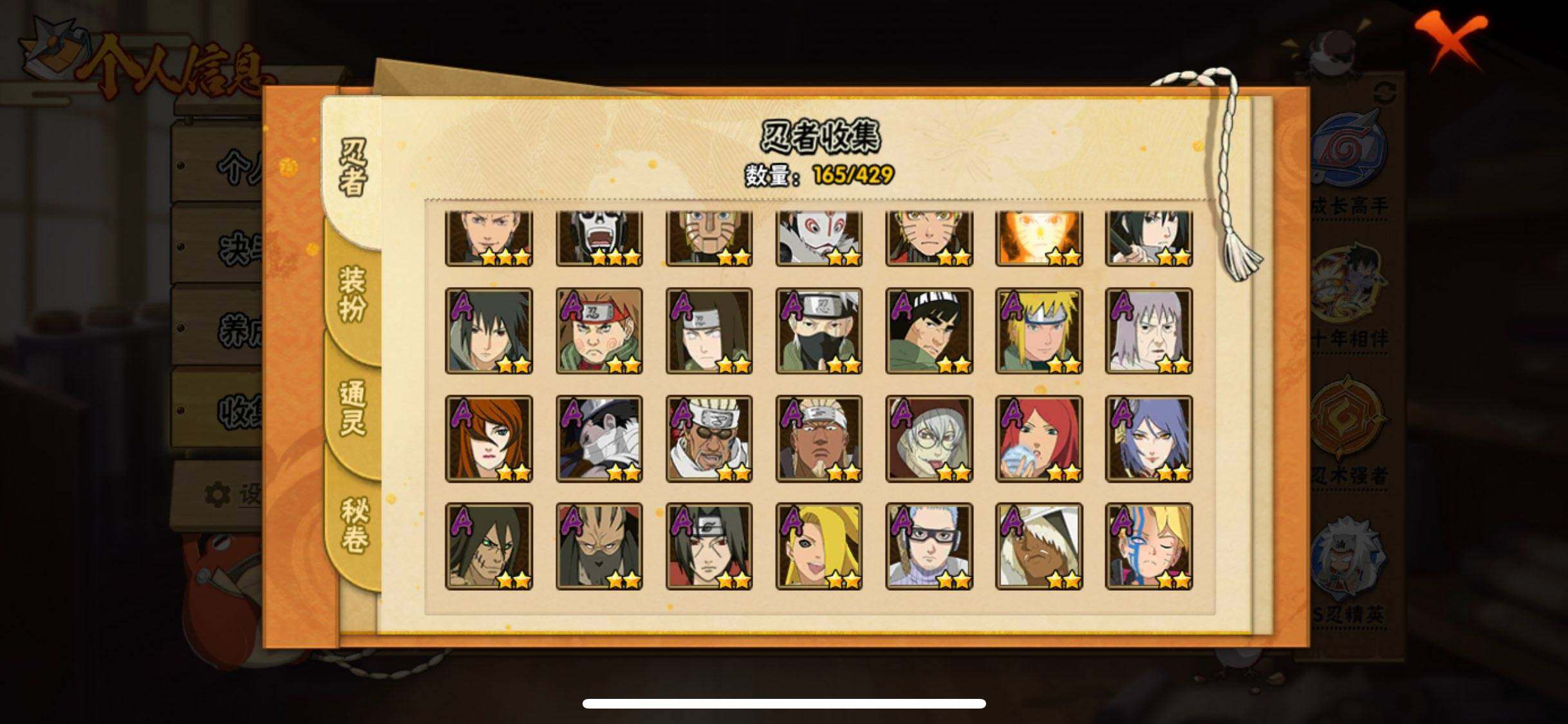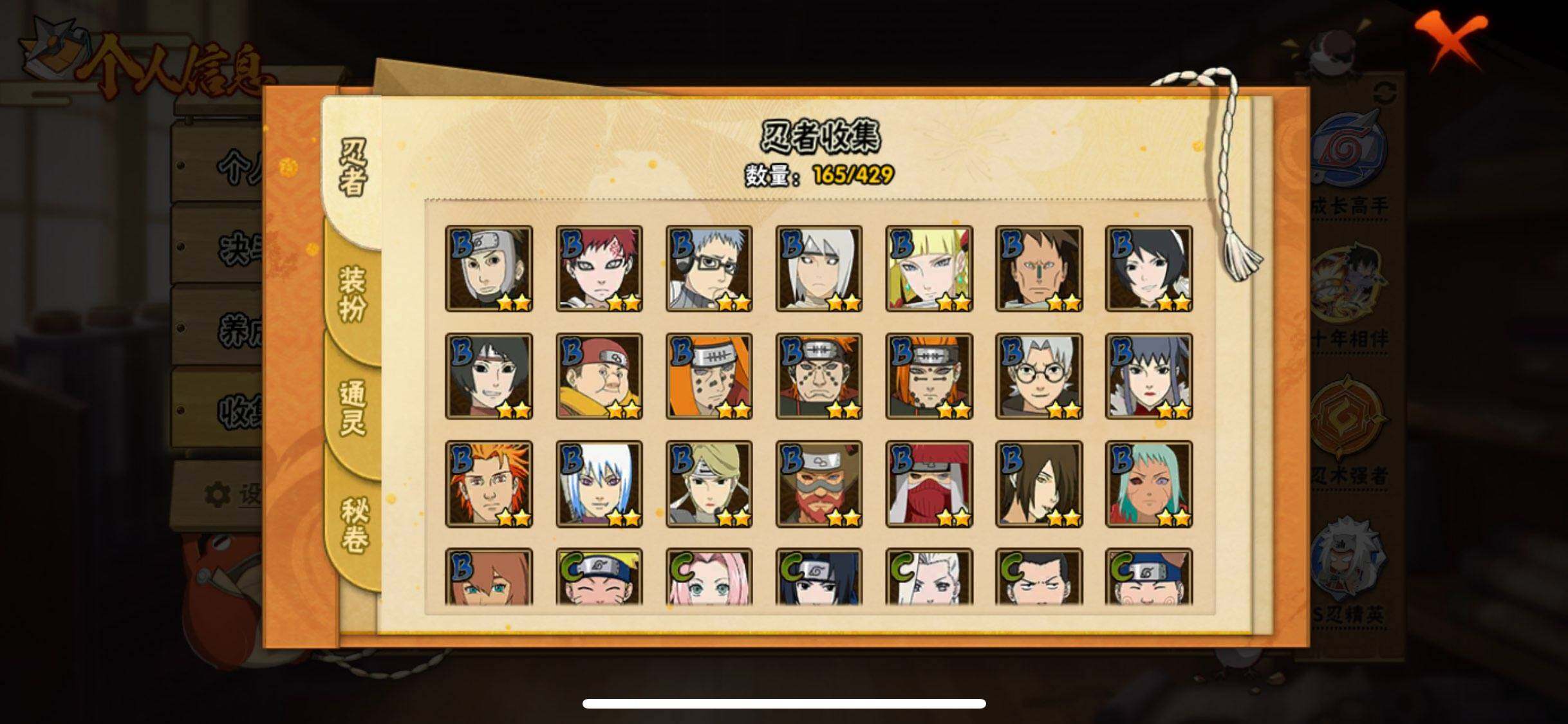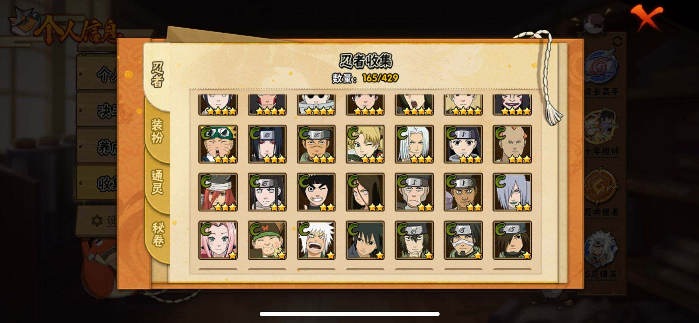 【S级忍者】:波风水门「秽土转生」(3星),大野木「忍界大战」(3星),宇智波带土「忍界大战」(3星),宇智波鼬「须佐能乎」(3星),自来也「舞之豪杰」(3星),大蛇丸(3星),自来也「传说中的三忍」(3星),波风水门(3星),漩涡鸣人「九喇嘛连结」(3星),迈特凯「死门」(3星),佩恩「天道」(3星),宇智波佐助「永恒万花筒」(3星),宇智波斑「五影会谈」(3星),漩涡鸣人·宇智波佐助(3星),宇智波带土「十尾人柱力」(3星)