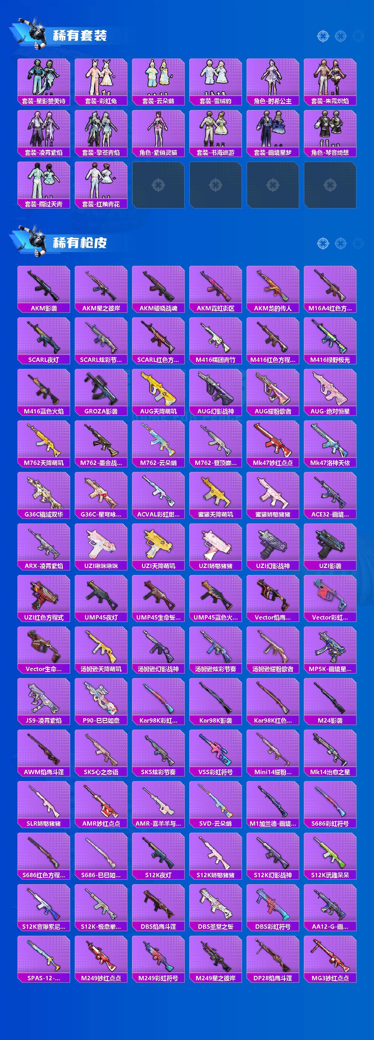 175套装/枪械12/装备293/载具1/战备172/王牌印记1